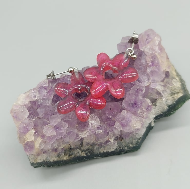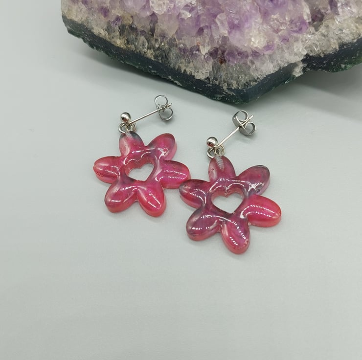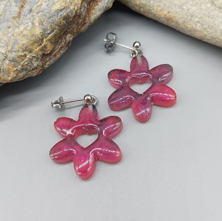 Heart Daisy Earrings, Domed Heart Daisy Earrings, Resin Earrings, Flower Earring