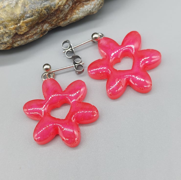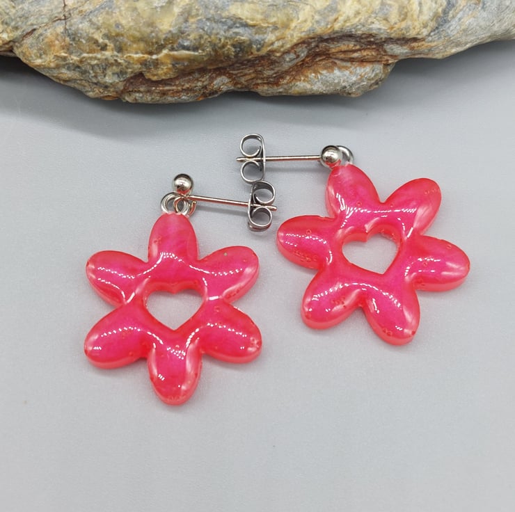 - Resin daisy flowers with a heart-shaped center
