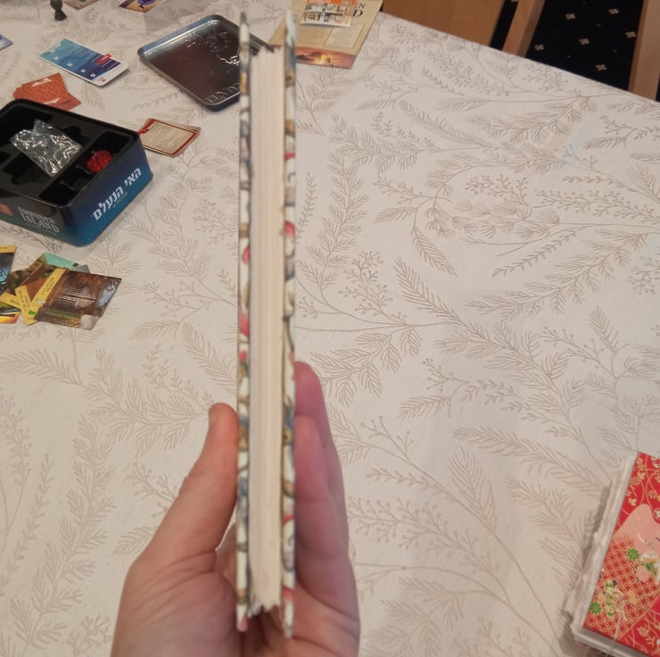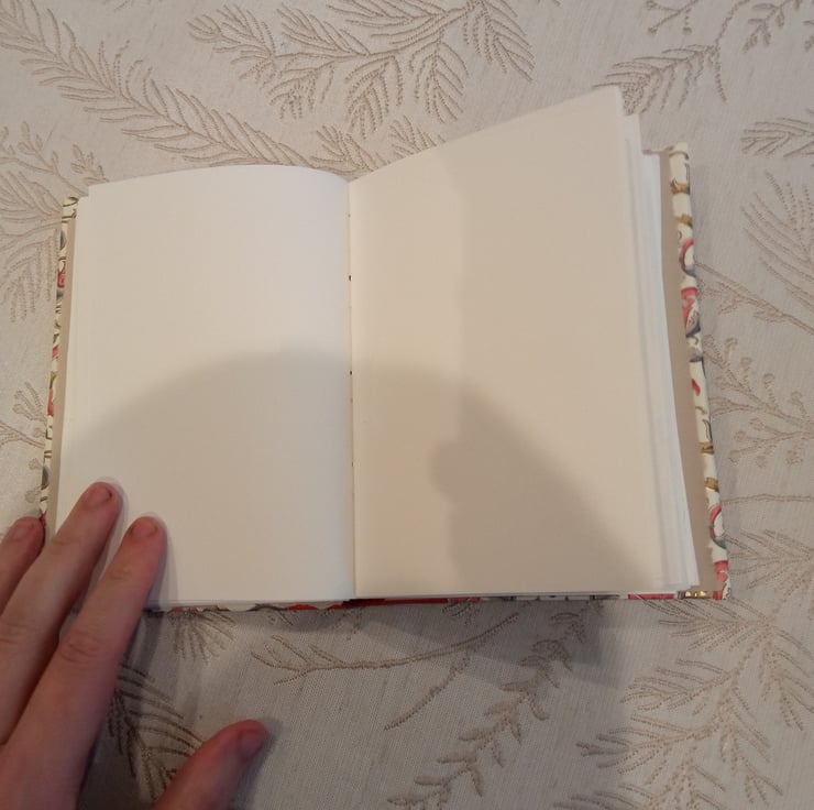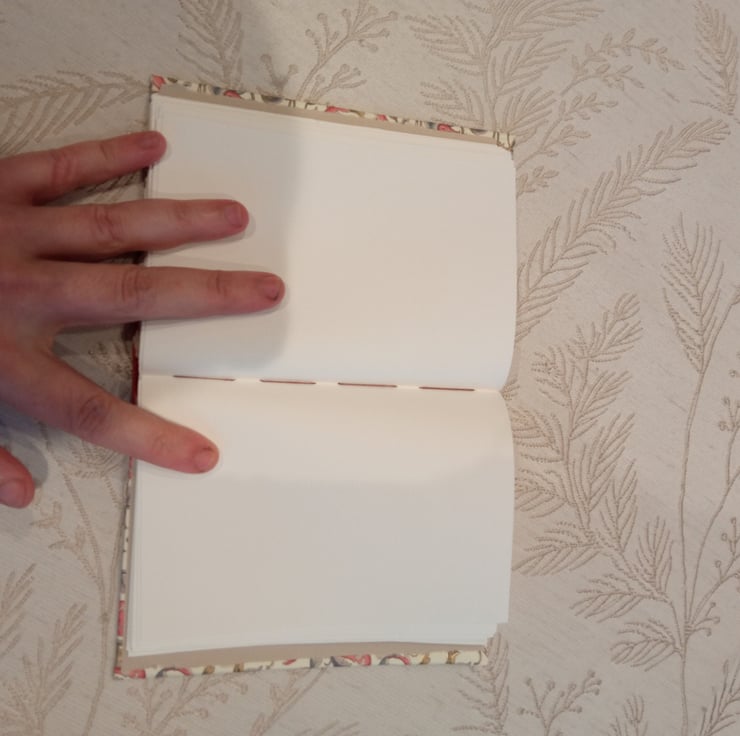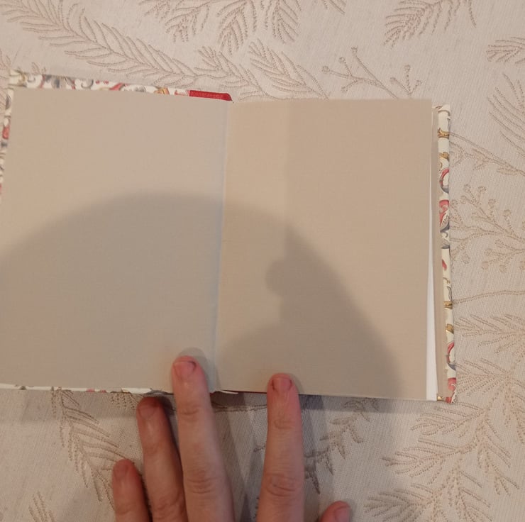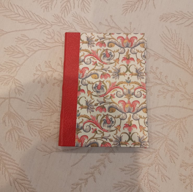 Slim Notebook with Decorative Italian paper hardcover and leather spine. Good quality paper inside. Approx A6 size. Imperfectly handbound from scratch.