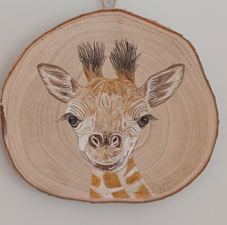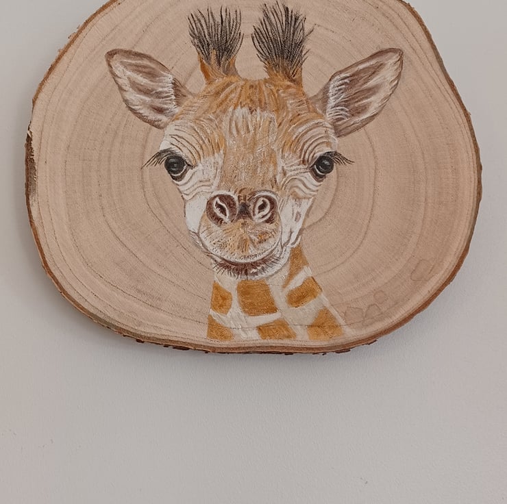 Inspired by the giraffes at the zoo, I've hand-painted a charming giraffe which I'm sure you will cherish. Painted with acrylic paints. Indoor decoration. Diameter 26cm approx