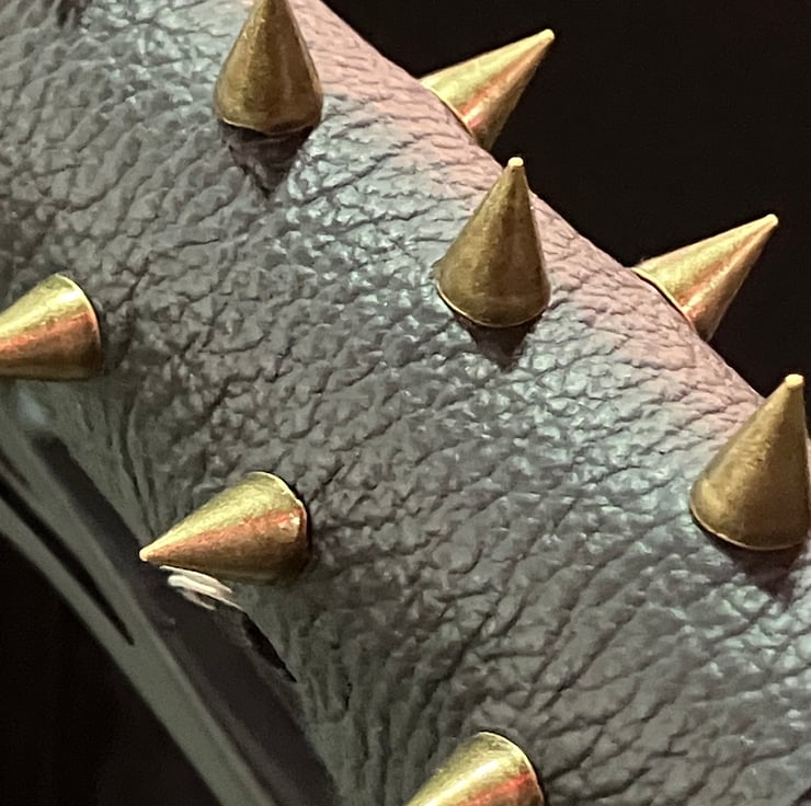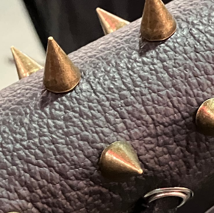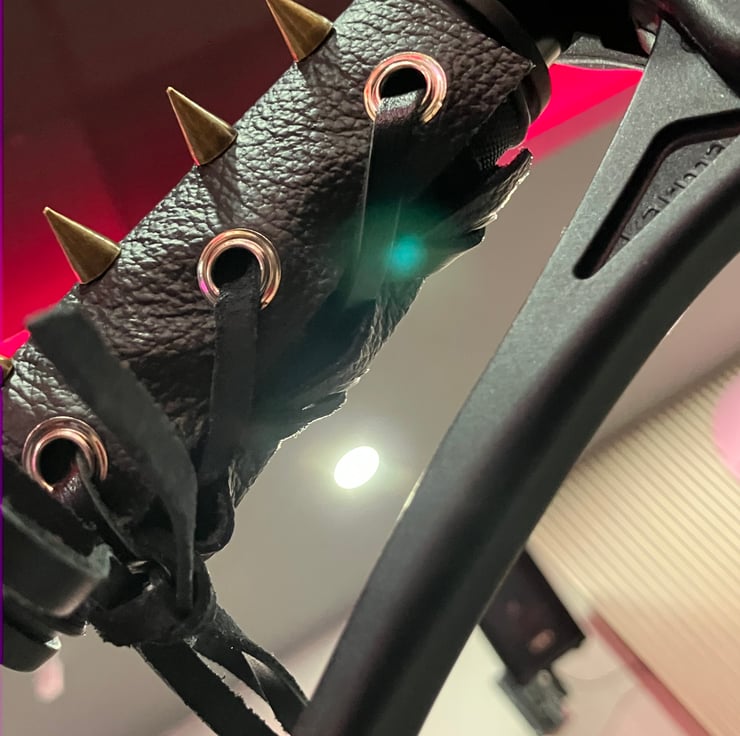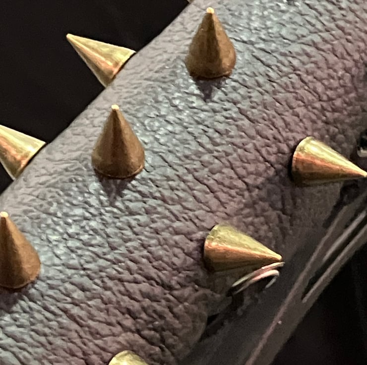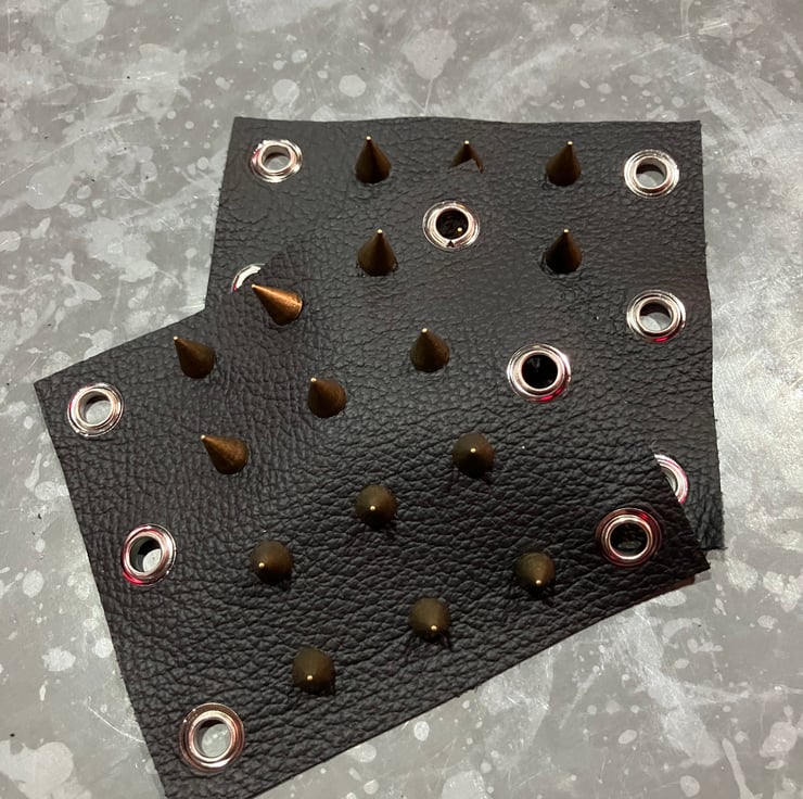 The specs on these WHDs are quite simple. They measure 9cm X 10cm. The black leather is a soft 2.0 oz leatherweight, with 12 antique bronze coloured 7mm spikes/cones strategically placed on each WHD (that's 24 in total). A leather lacing is given for each WHD. (sold as a pair)