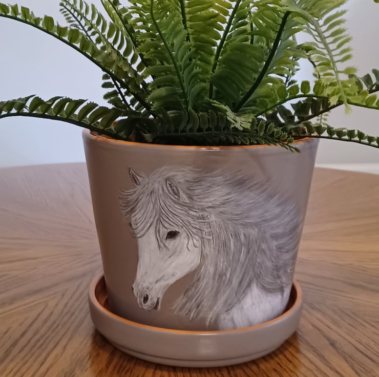 Elegant and gentle horse hand-painted in acrylic paint, catching its beauty, a gift to be cherished. Sealed for durability, but best kept indoors to perseve the painting. Dimensions: 17.5cm W x 15.5cm H