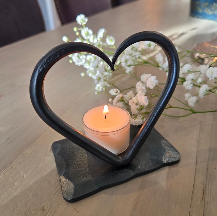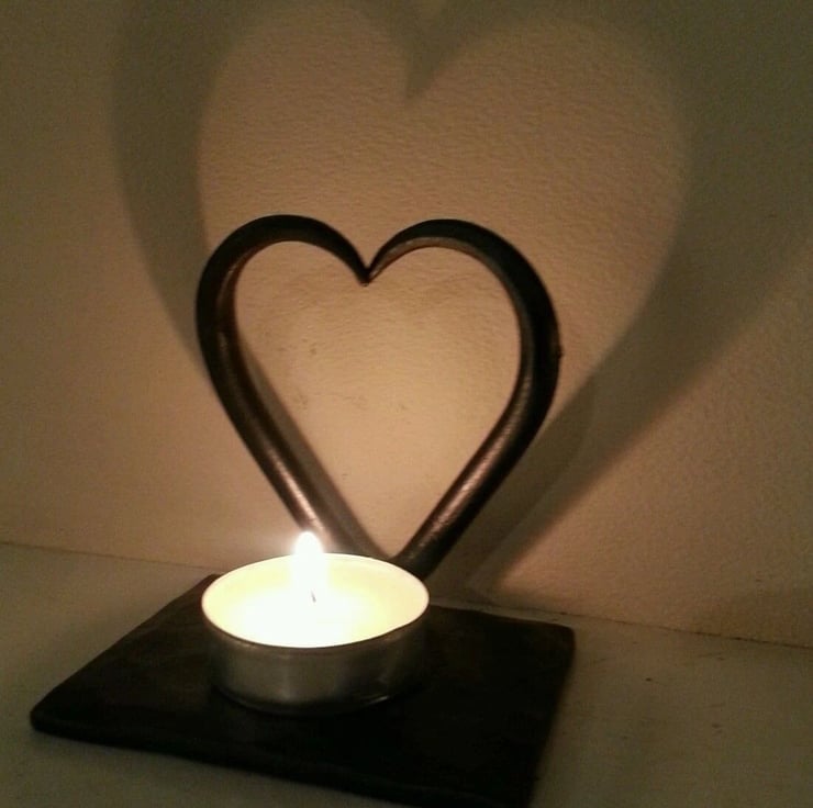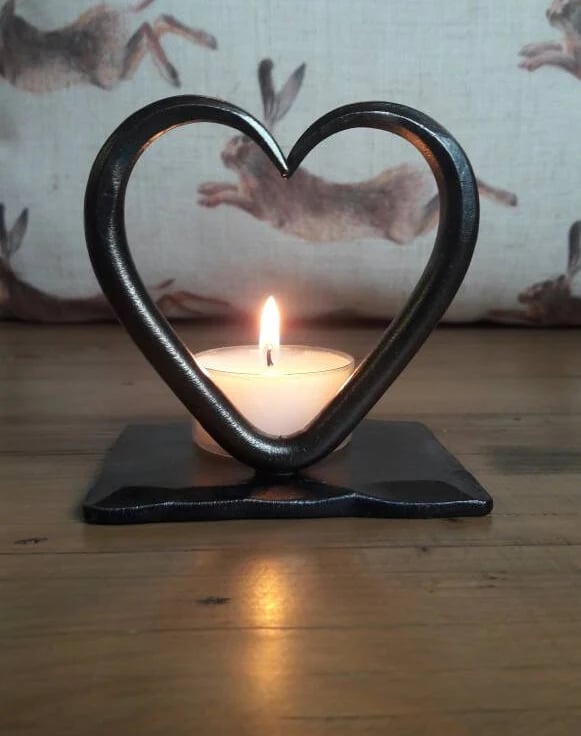Give your home the 'light of love' with a hand forged love heart tea light.