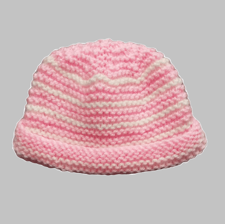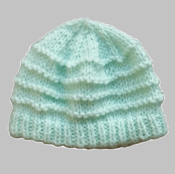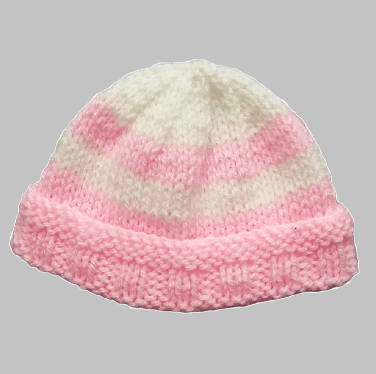 This hand knit PATTERN is for a set of hats for baby. To fit premature baby: Width round head: 22.75 (28: 32) cm or 9 (11: 13) inches. Hats are knitted in double knitting yarn using 3.25 mm and 4 mm knitting needles. They knitted using a pair of single pointed needles and are knit flat and seamed.