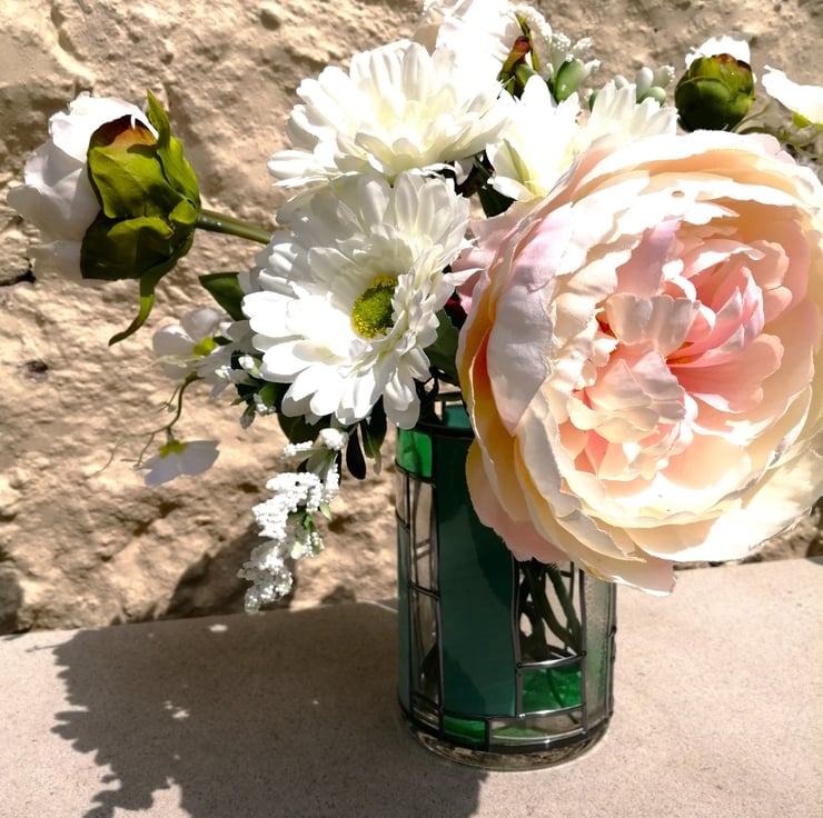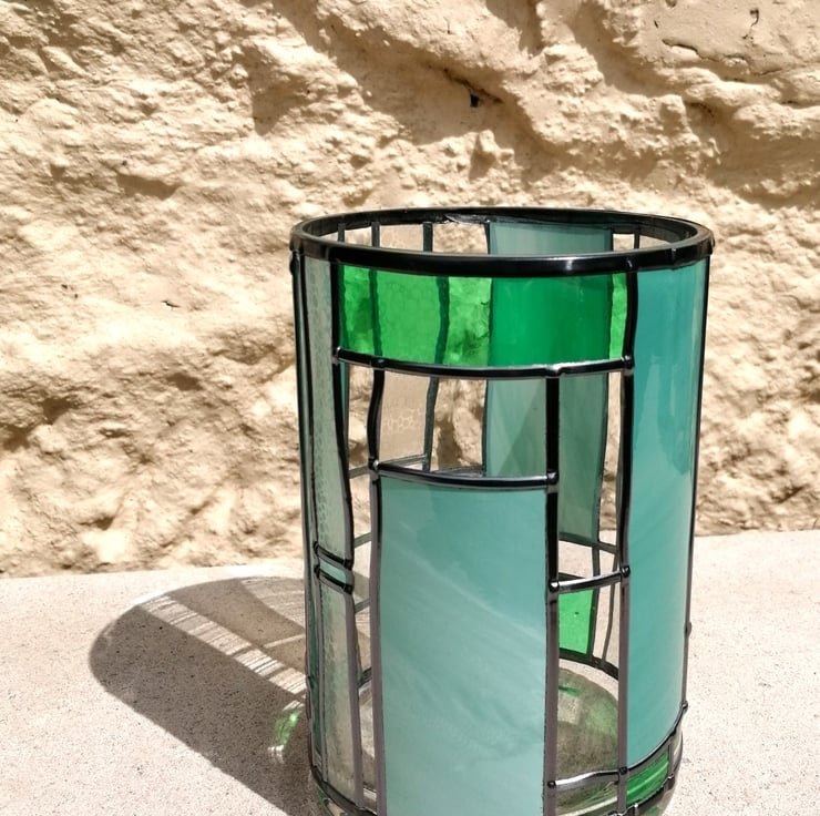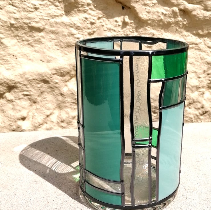 Sea Glass Greens is a Stained Glass Effect Flower Vase. Hand leaded Design Creat