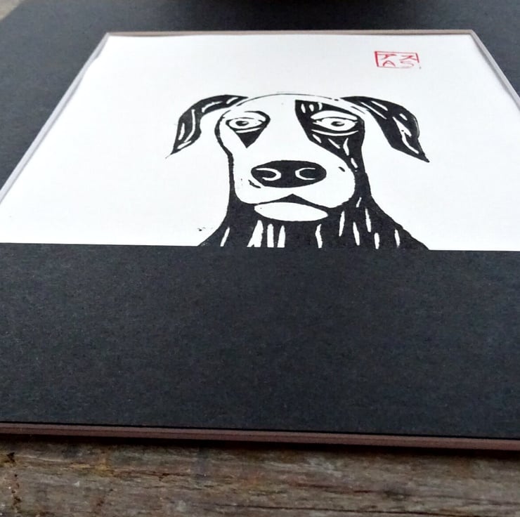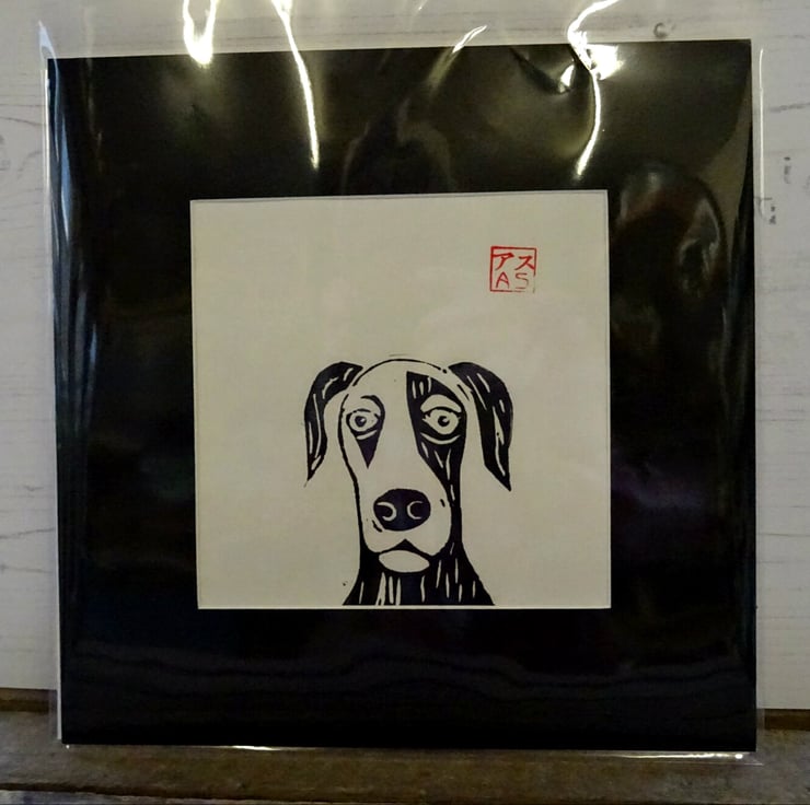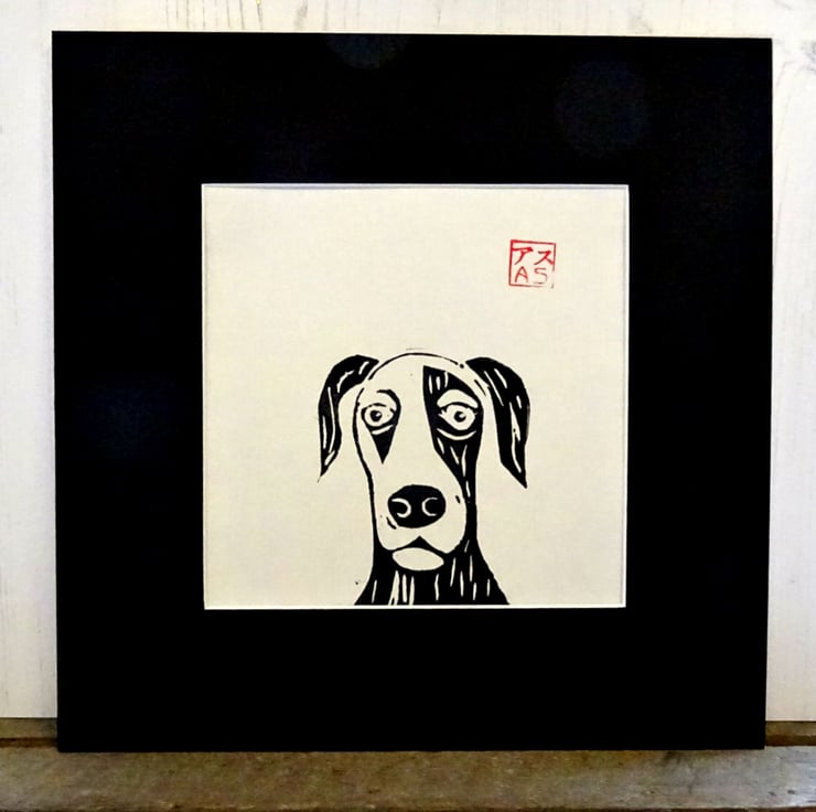 He was hand carved in lino before being printed using oil based black ink onto Sumi rice paper which gives a lovely texture and slight creamy colour to the background.