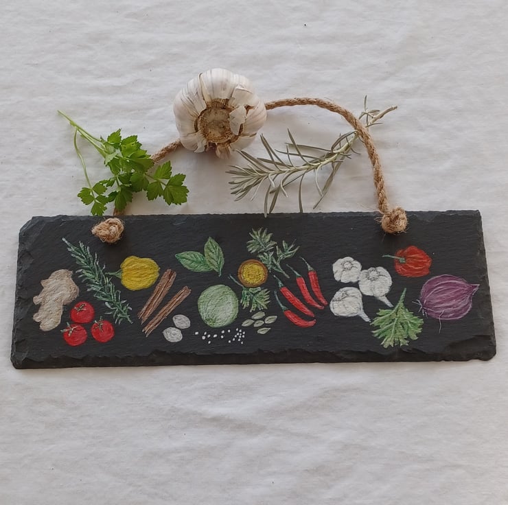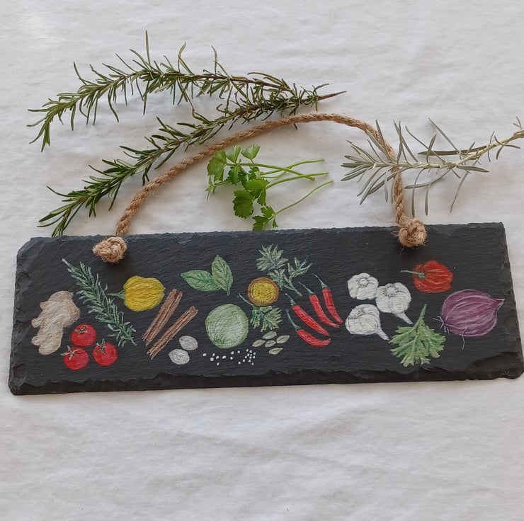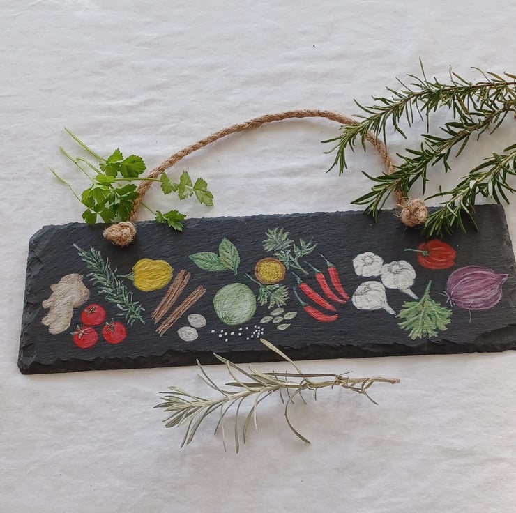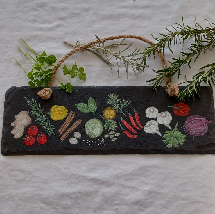Add a touch of charm to your kitchen with this lovely hand-painted spices and herds. Indoor decoration. Dimensions: 10cm W x 30cm L x 0.7cm H