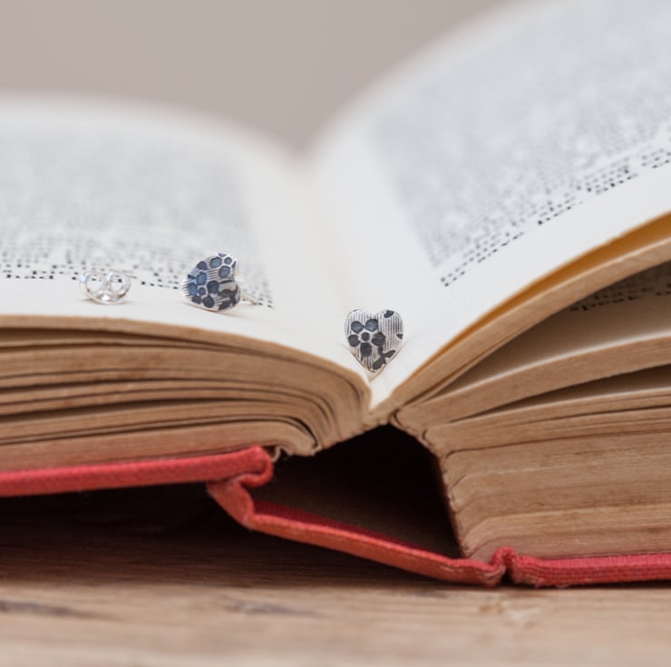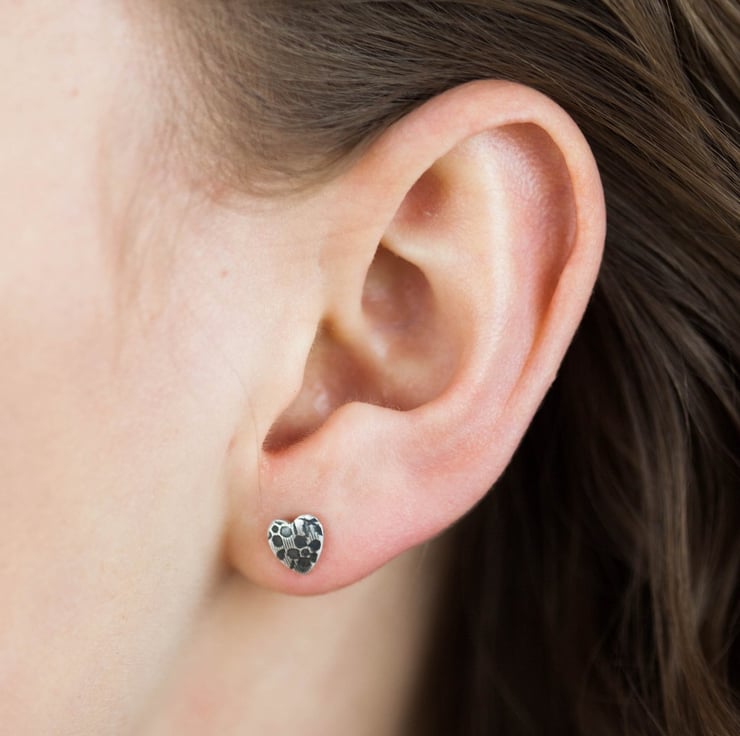 Delicate small black heart earrings to woo the heart of any eco conscious fashionista. These silver heart earrings, with their spring flower design, will set hearts beating. Small and understated they bring a feminine touch to any outfit. We think these everyday earrings will make an excellent Valentines gift.
