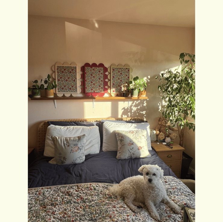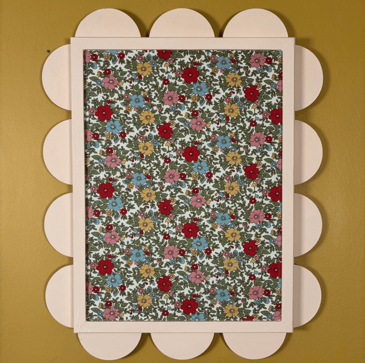 Showcasing our commitment to bringing bespoke art to your home with elegance, its pale pink edging complements the strong fabric colours, creating a charming and stylish addition to any space. This piece epitomizes our dedication to crafting unique and personalized designs. Perfect for those who appreciate subtle sophistication and vibrant energy in their living spaces. Let the delightful charm of The Kathryn enhance your home decor today.