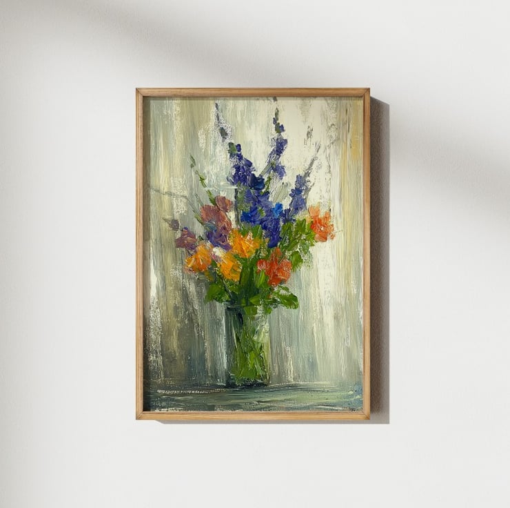 Perfect for brightening up any space, this piece is ideal for lovers of still life and floral art. Whether displayed in a living room, bedroom, or workspace, its timeless beauty and vibrant palette make it a standout addition to any art collection.