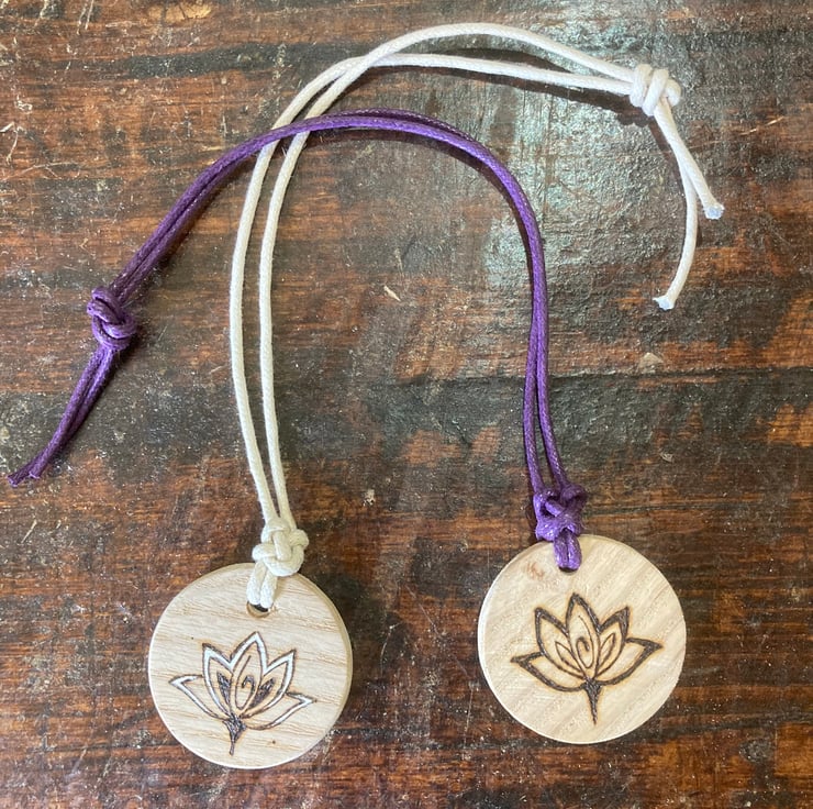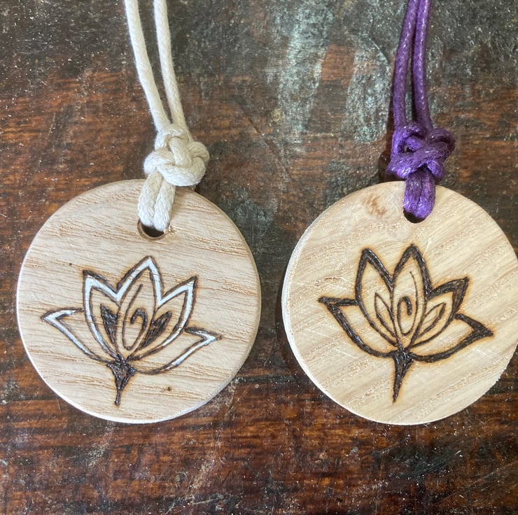 Unique pendants handmade from recycled hardwood and decorated using pyrography - the art of burning into wood.