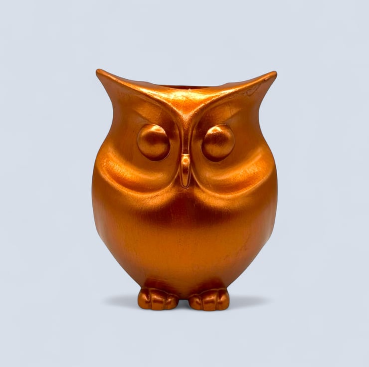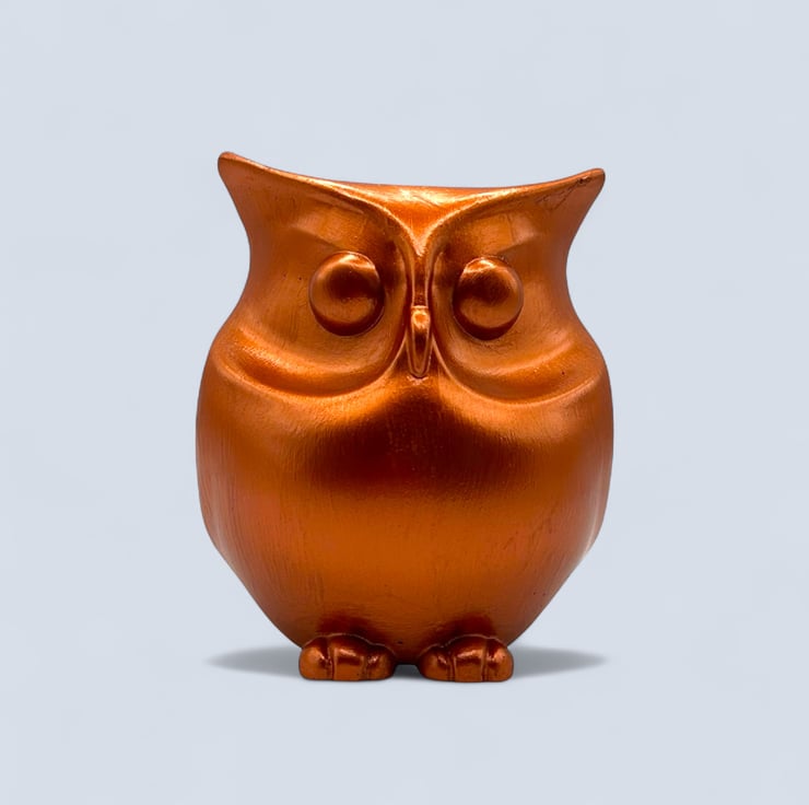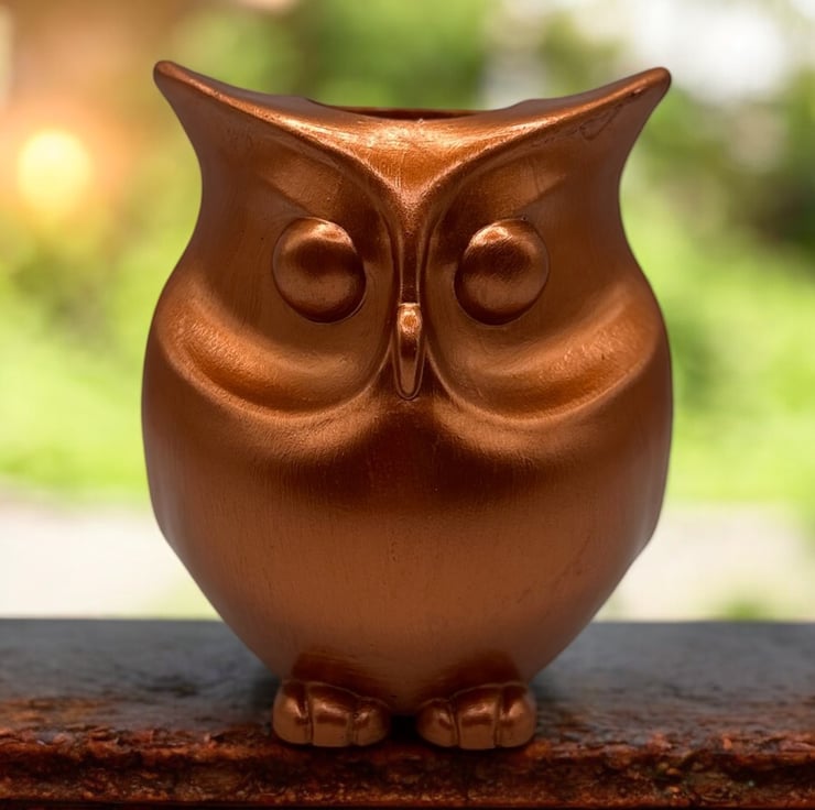 Inspired by the gentle glow of candlelight on autumn evenings, this owl tealight holder was created to bring warmth and calm to any space. The copper finish catches the light beautifully, adding a soft shimmer that feels both comforting and elegant. Each owl is made by hand, giving it its own unique personality and charm.