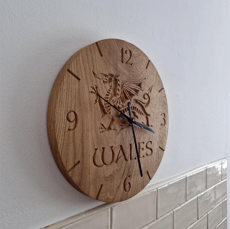 These clocks are made from Natural Oak and treated with food safe mineral oil which brings out the unique beauty of the wood grain and colour tone which varies from item to item
