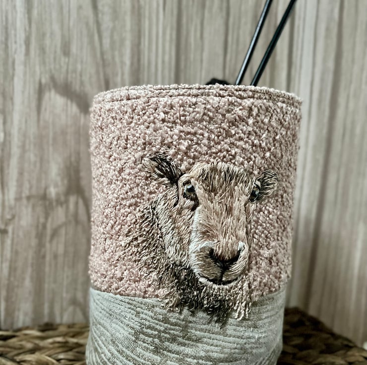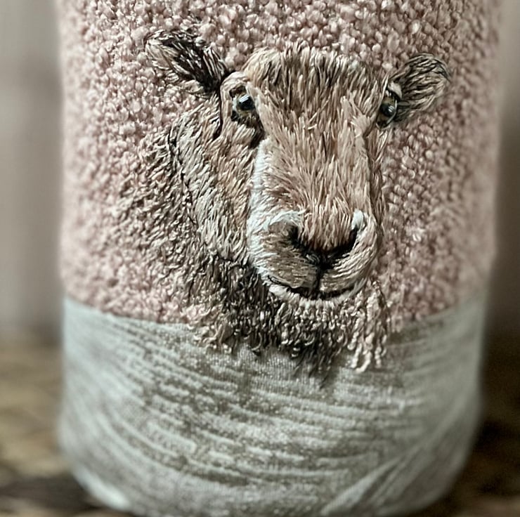 The sheep has been hand embroidered onto oddments of wool to give a slight 3d effect.