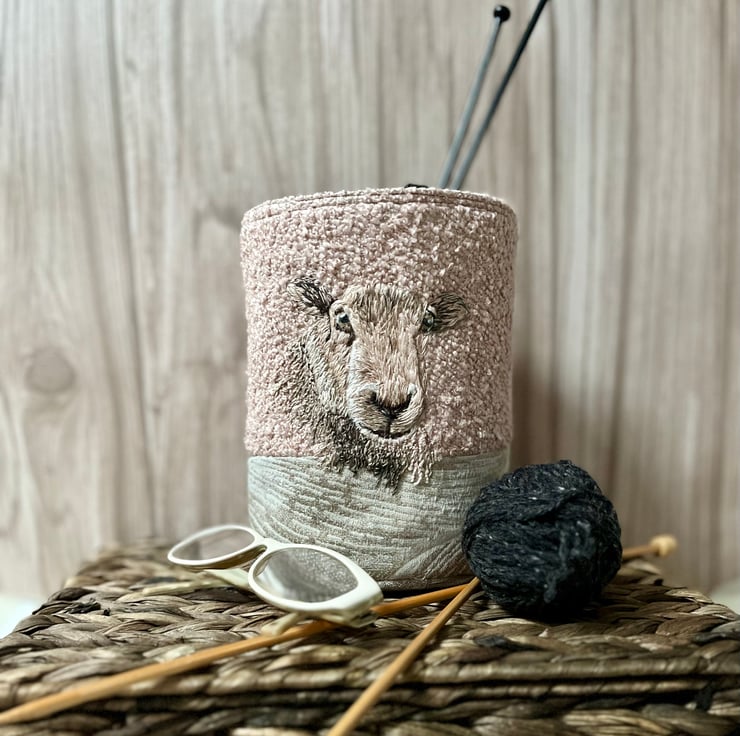 This one is perfect for a storage pot for all those bits and bobs, make-up or even as a knitting tidy as shown here.
