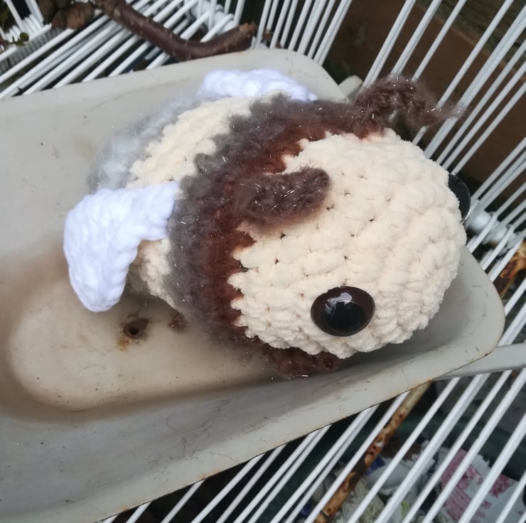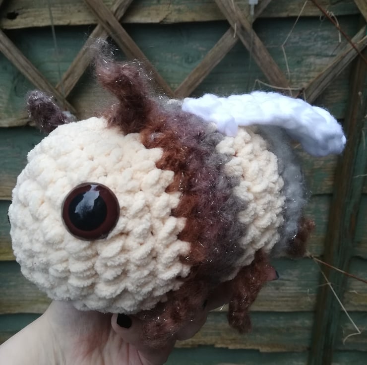 This adorable bumble bee is made using a blanket yarn and a lovely sparkle yarn with extra fluff.