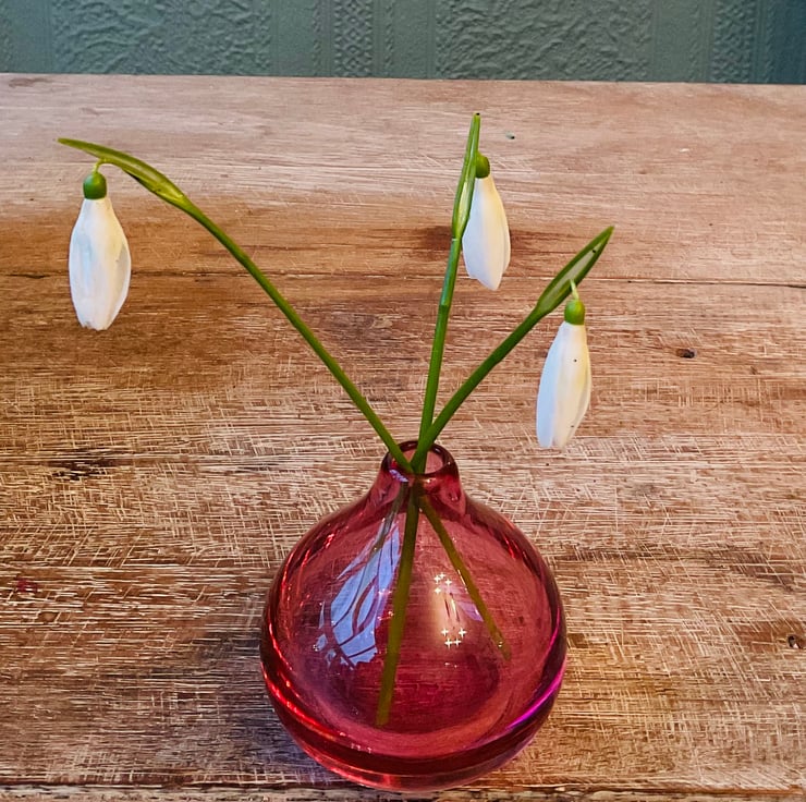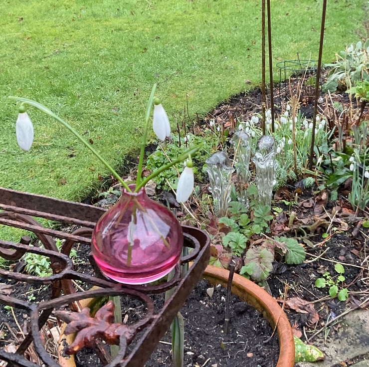 I had lots of requests from people asking for a little vase that could accommodate the last flowers of the bunch or the orphans from the garden and this was my response but it wasn’t until I was next to an antique dealer at a show that I discovered they have another name . The Victorians brought snowdrops to this country and loved to have bunches of them in little vases just like this. So for the early months of each year they morph into Victorian Snowdrop Vases and for the rest of the year they are all kinds of flowers tiny vases