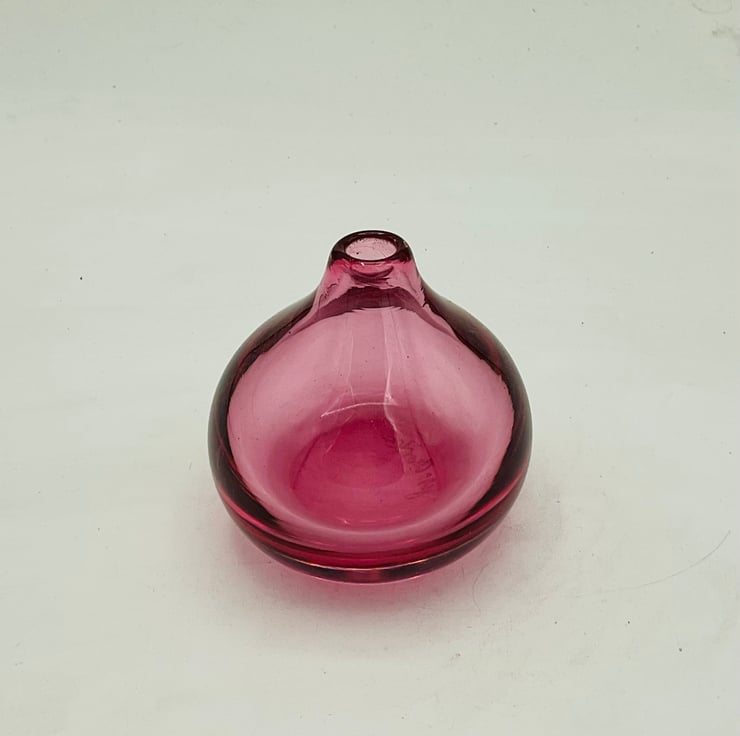 Ruby Victorian Snowdrop Vase measuring 6cms high. This piece has a narrow top allowing for 2 to 3 stems