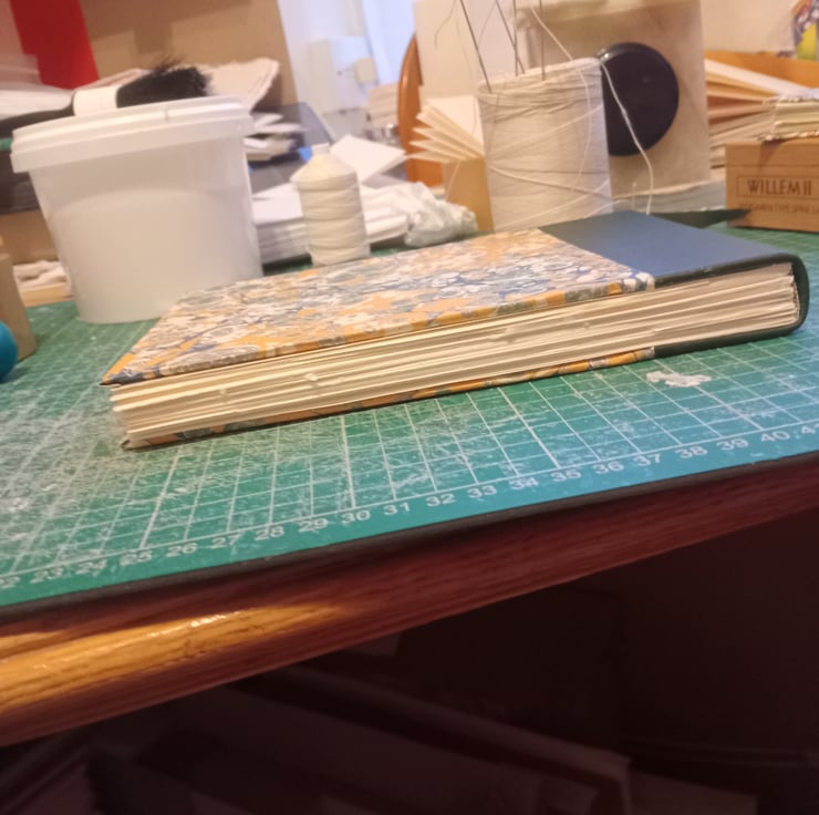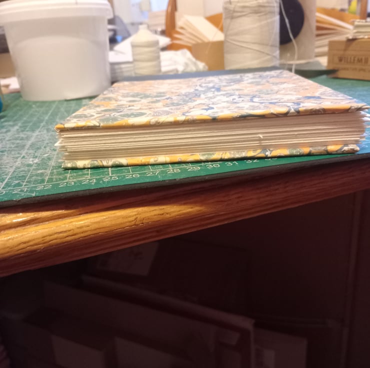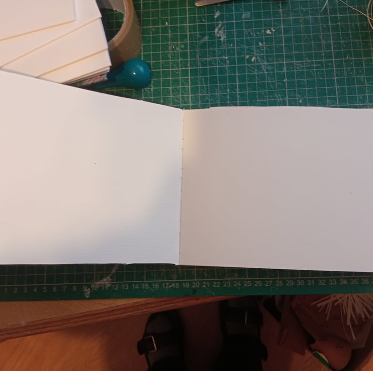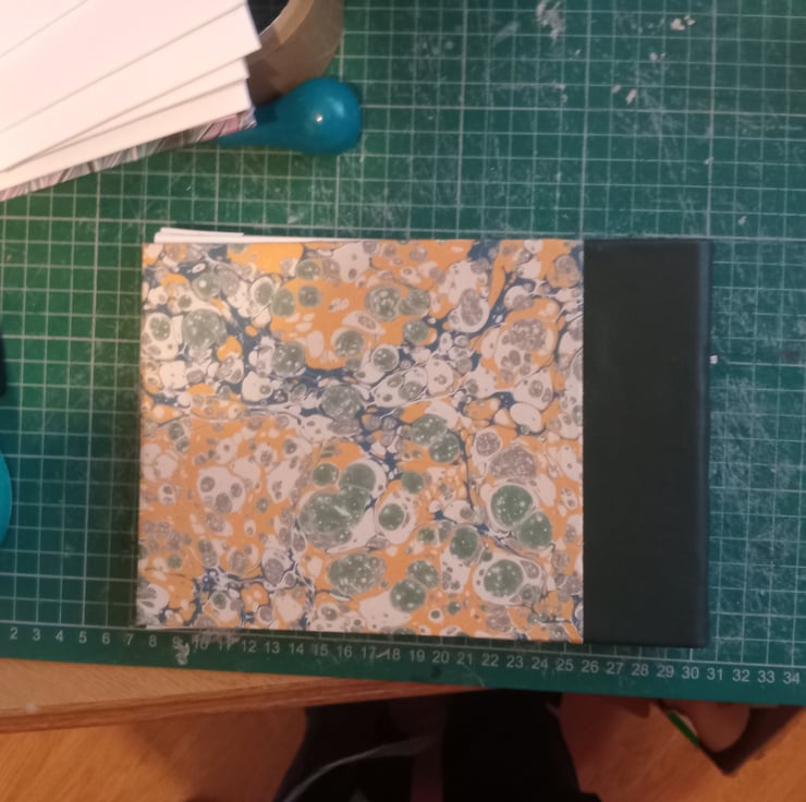 A5 landscape sketchbook with budget watercolour paper 190 gsm, one smooth and one textured side, printed marbled cover and leather spine. Flawed / Seconds