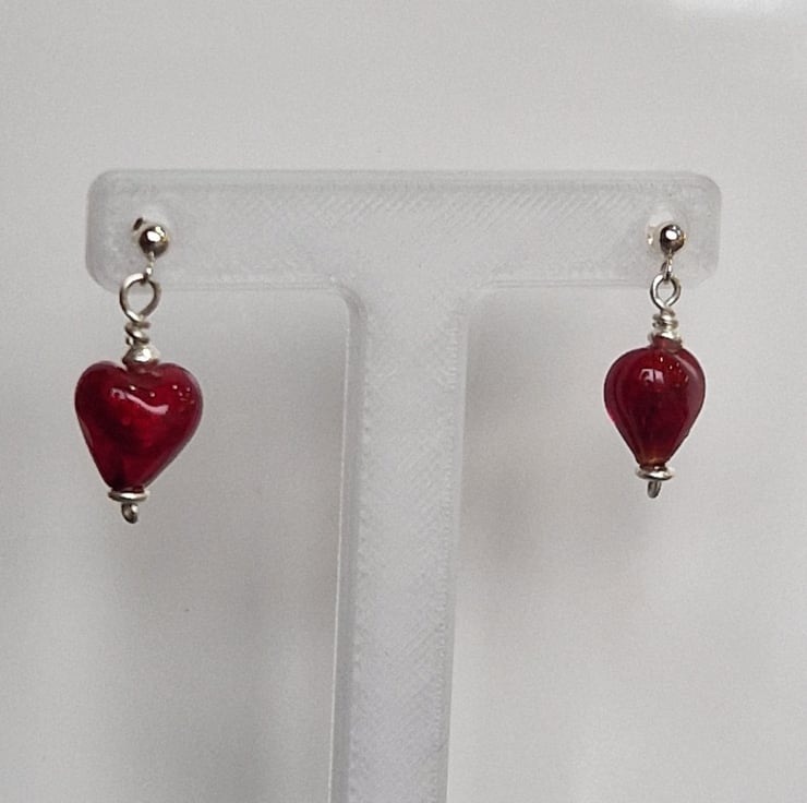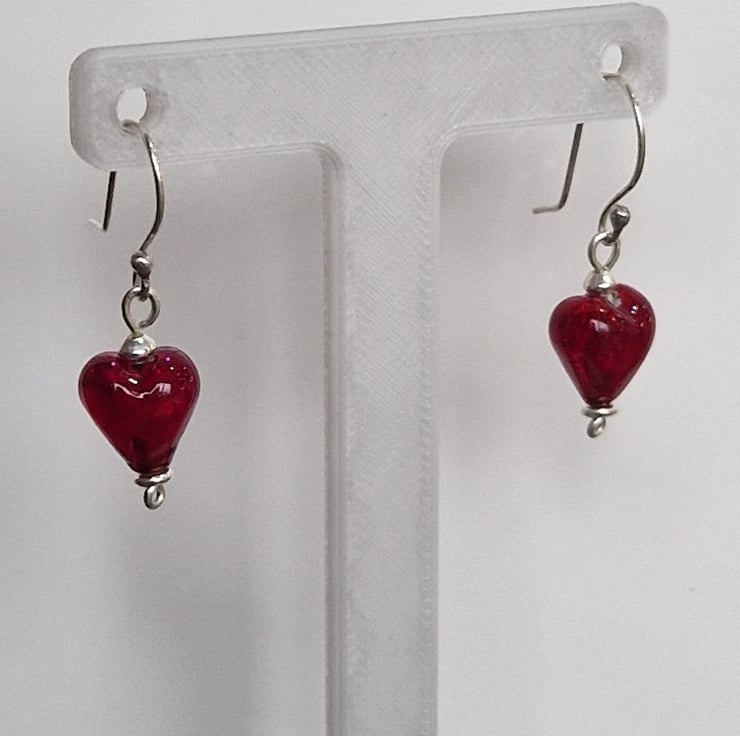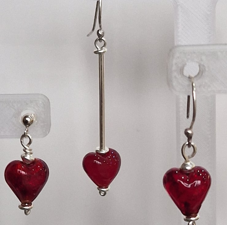 Here are three earring designs, all using beautiful handmade Murano glass hearts (10mm).