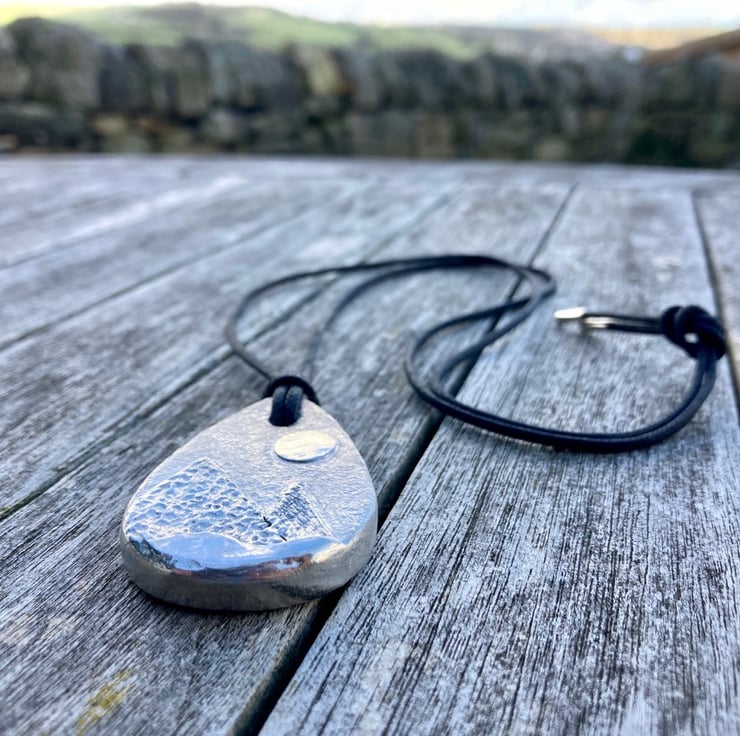 I enjoy being outdoors in the countryside and growing up with parents interested in geography means I have always been fascinated by the landscape and natural landforms, so there is no surprise it has made its way into my jewellery. Mountains are timeless and although we have hills here in Sowerby we certainly don't have mountains! I love how the moon can connect us, wherever in the country we are we can see it.
