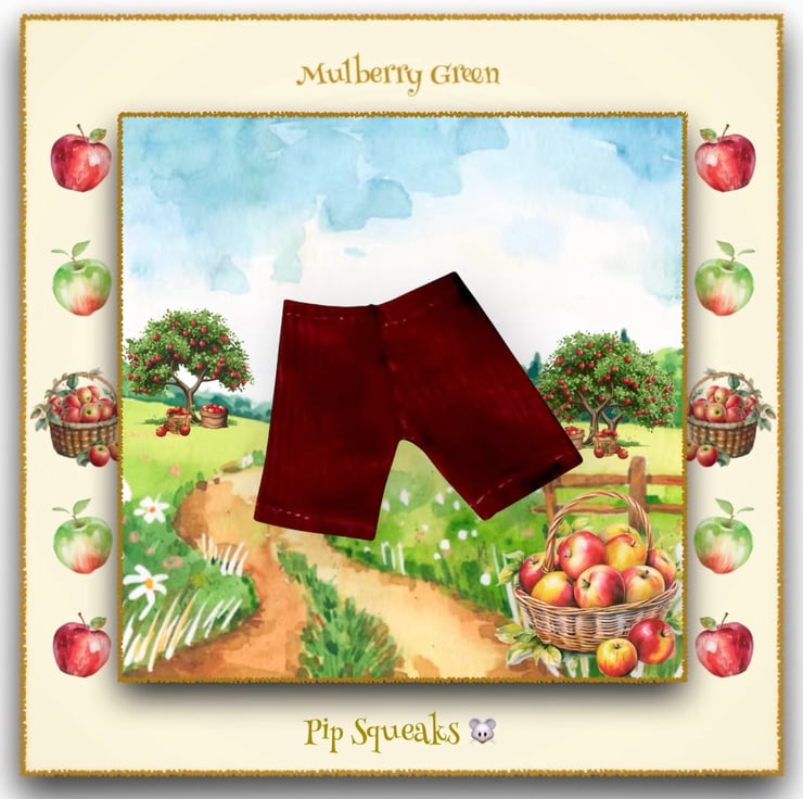 A cute little pair of burgundy corduroy trousers, made specially to fit the young Pip Squeaks.