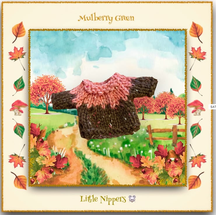 A cute little brown and orange yoked jumper, made specially to fit the Little Nippers.