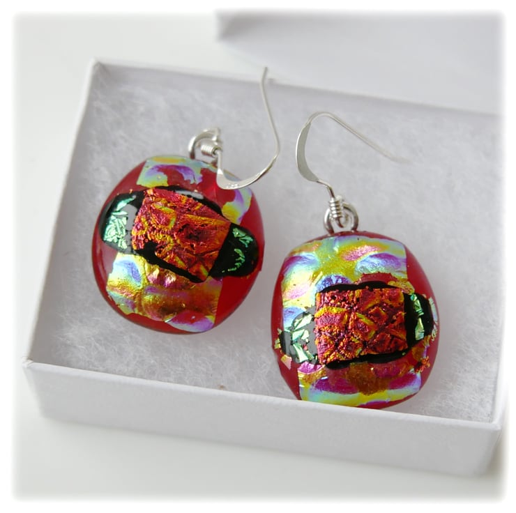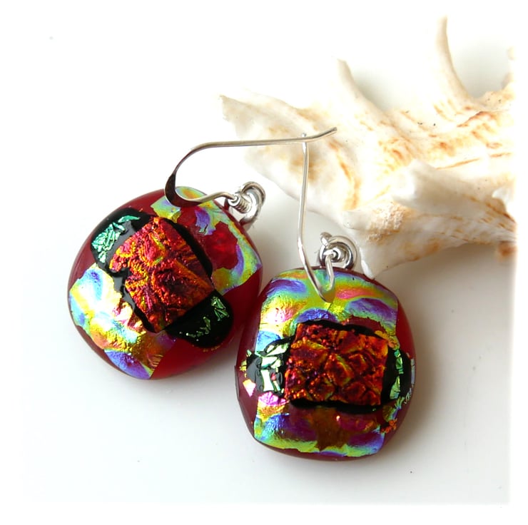 The dichroic glass cabochons for these earrings were handmade, by me, with love.