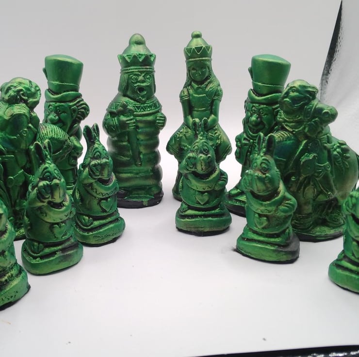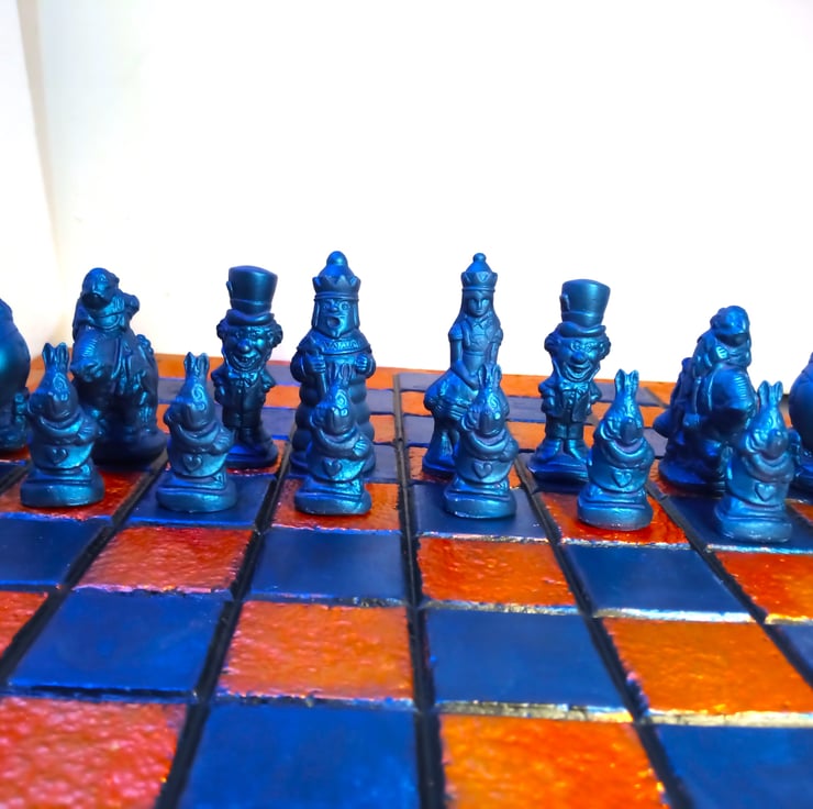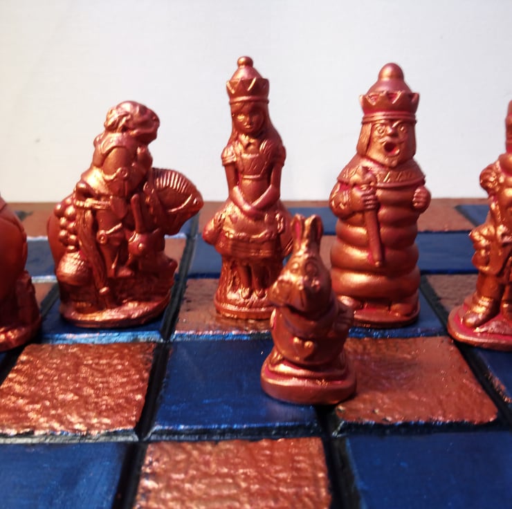 A truly unique Chess set depicting the main characters from Lewis Carols "Alice in Wonderland"