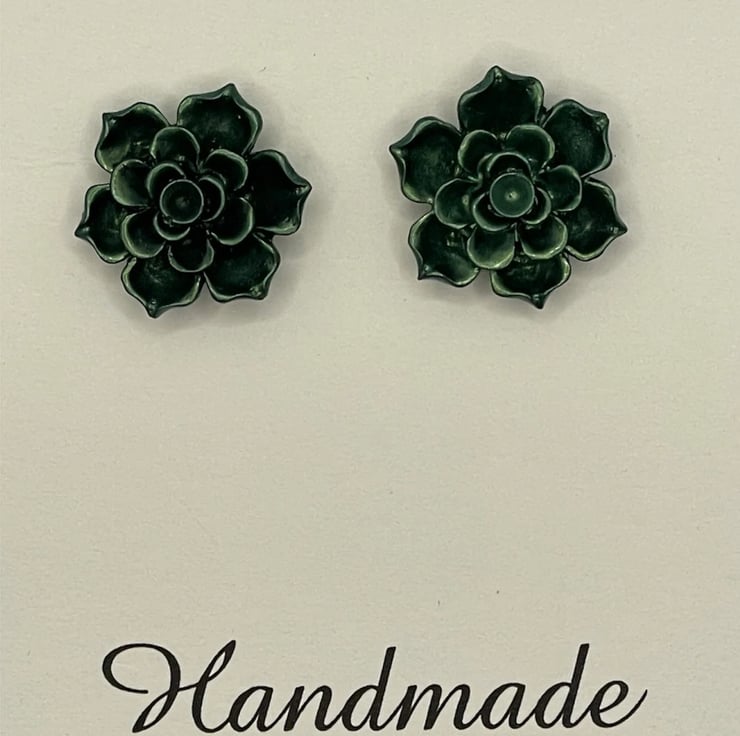 Echeveria succulent stud earrings made of resin with a stainless steel stud.
