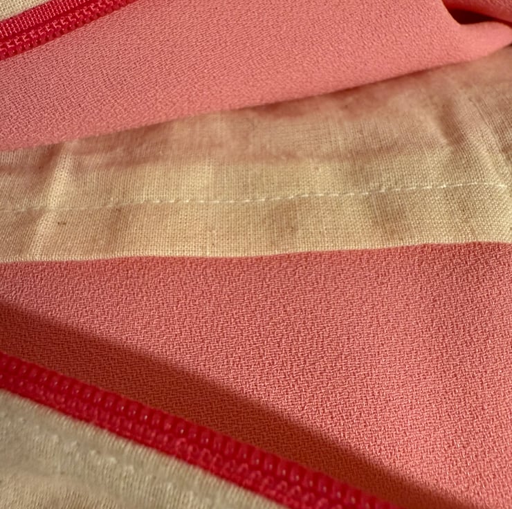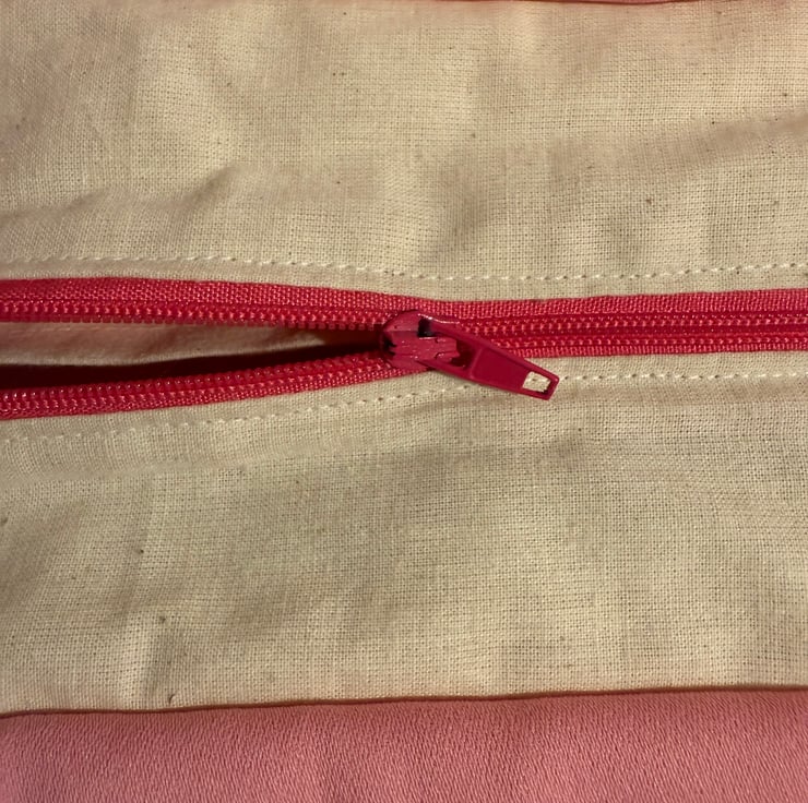 A bright pink zipper for a full body closure