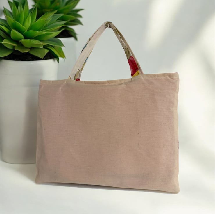 A calico style fabric making the bag slightly firmer