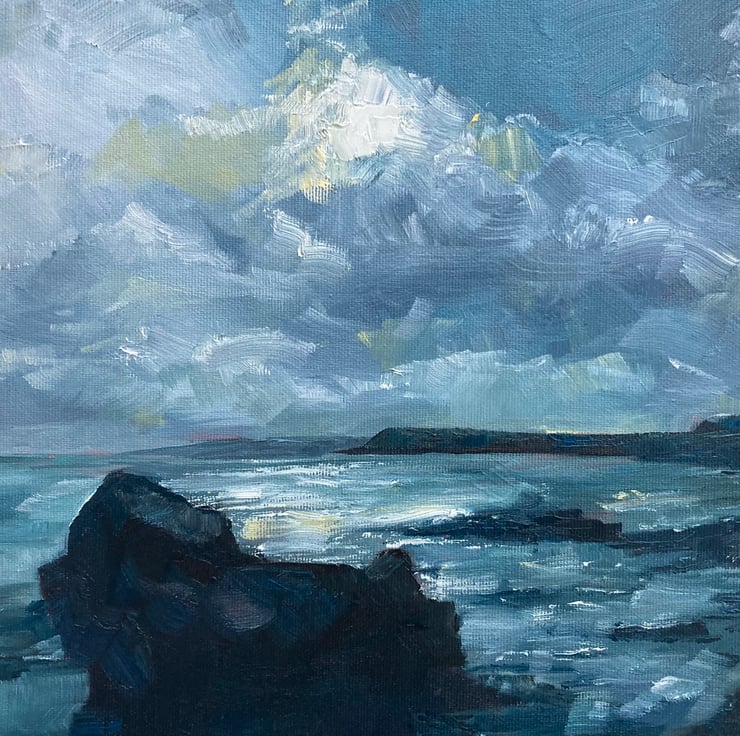 An A4 print of an original oil painting of the coast near Falmouth, Cornwall.