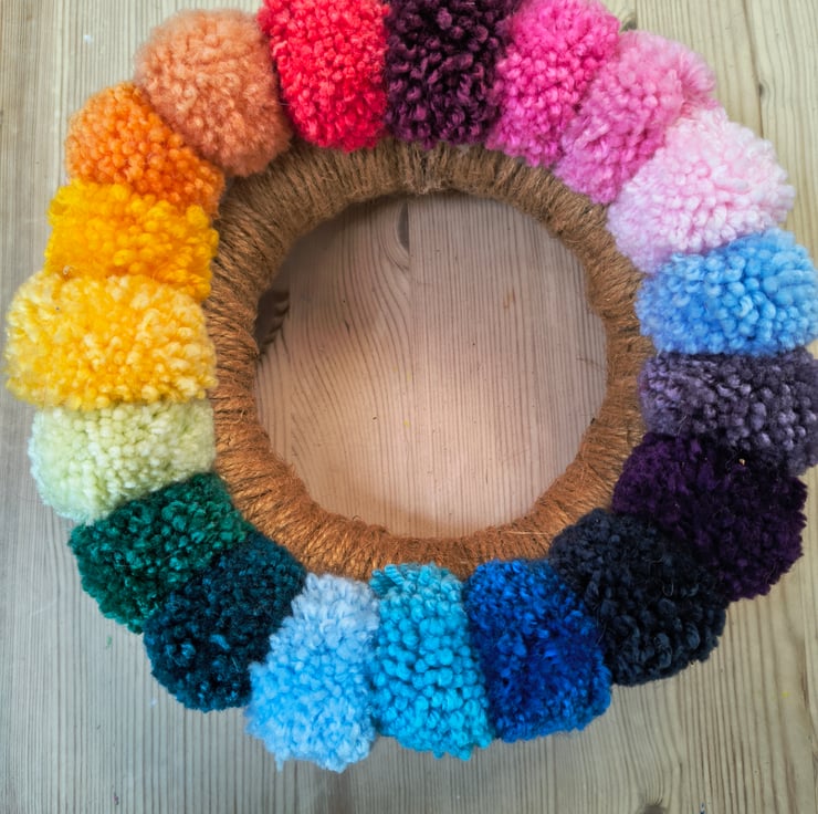 Somewhere over the rainbow pom pom wreath FREE POSTAGE
