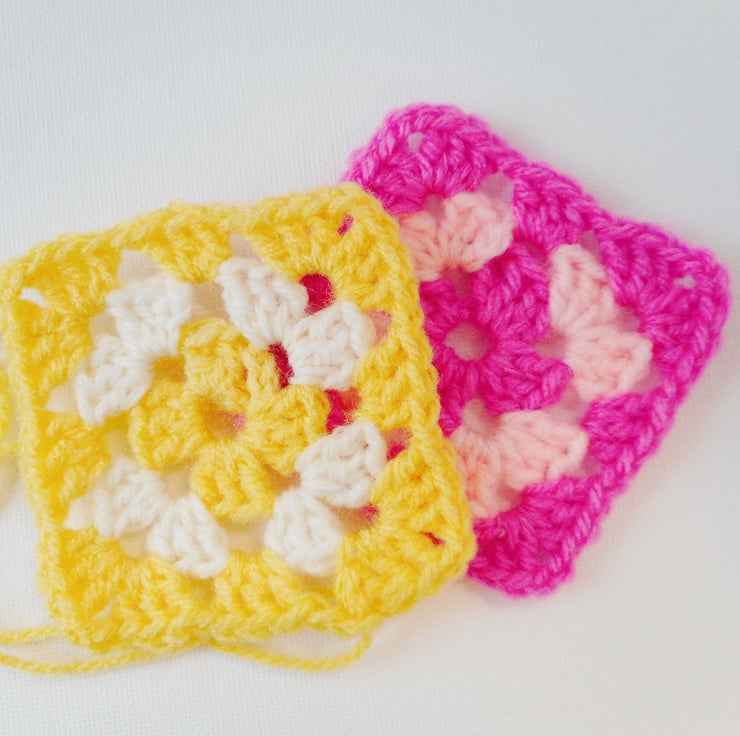 How to make the classic Granny Square, from joining a chain into a ring and working into it, how to work in rounds and change colours as you go, and how to weave in your yarn ends when finished.
