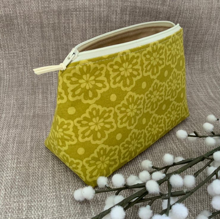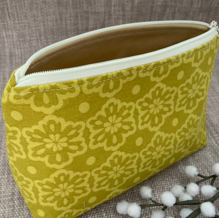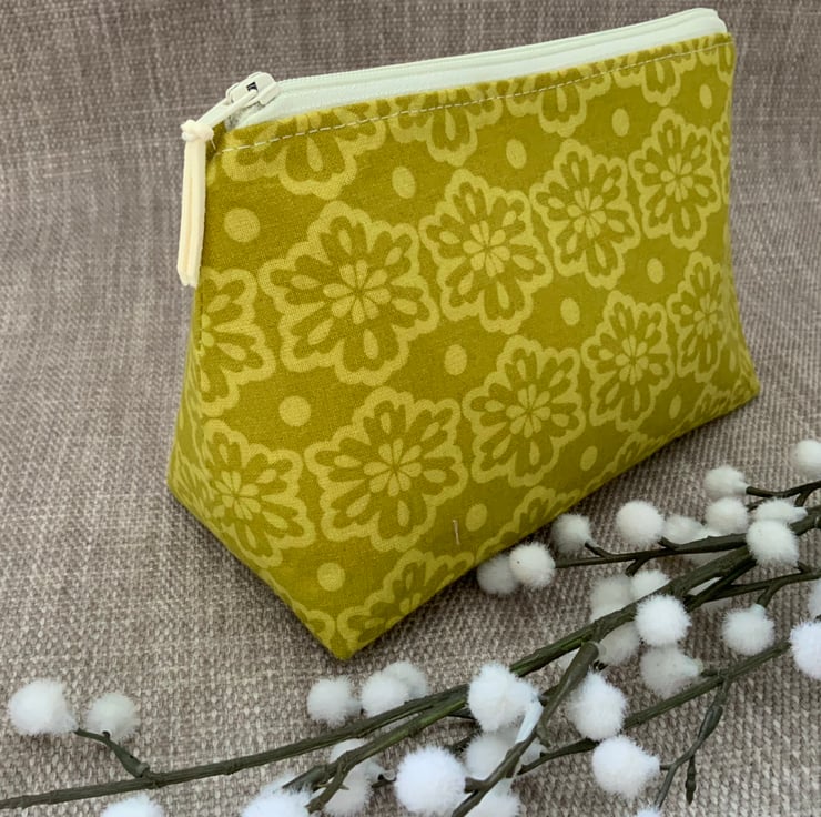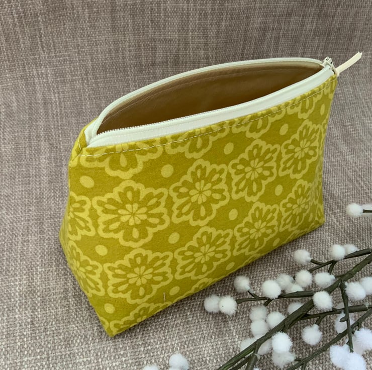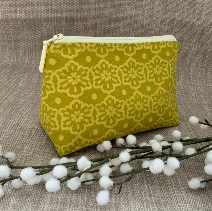 Beautiful square bottomed zipped cosmetic bag, purse made from 100% cotton fabric and lined with coordinating cotton and interfaced to give it a little structure.