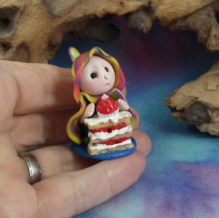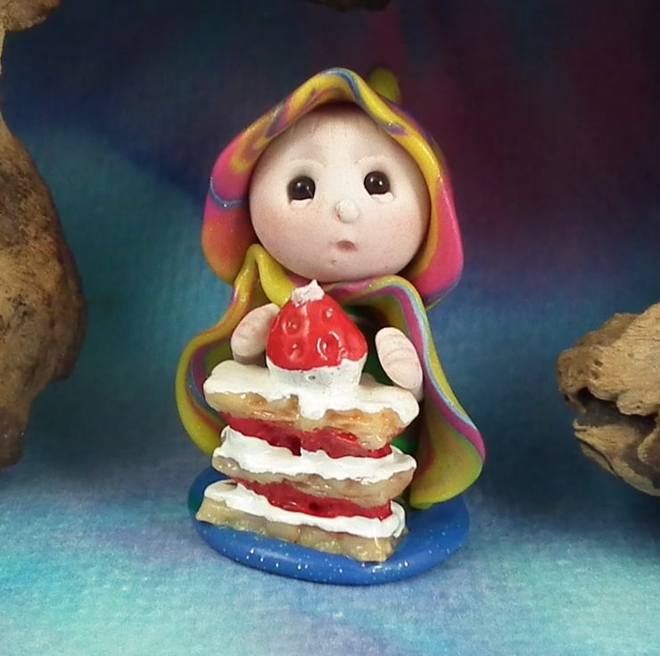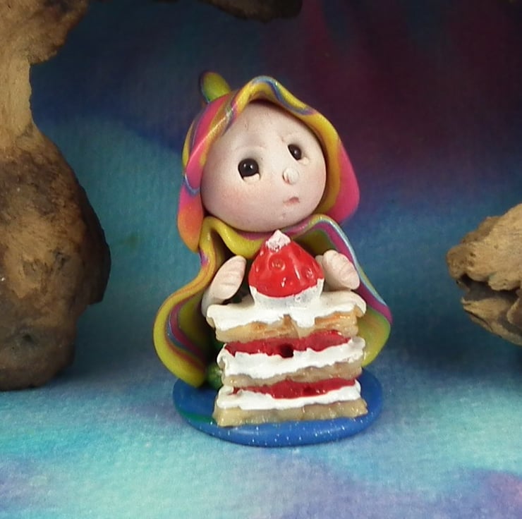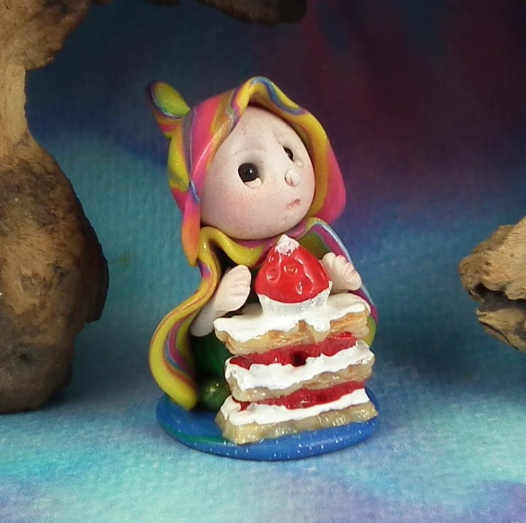 Nancy is a tiny Garden Party Gnome with delicious strawberry cream slice ...