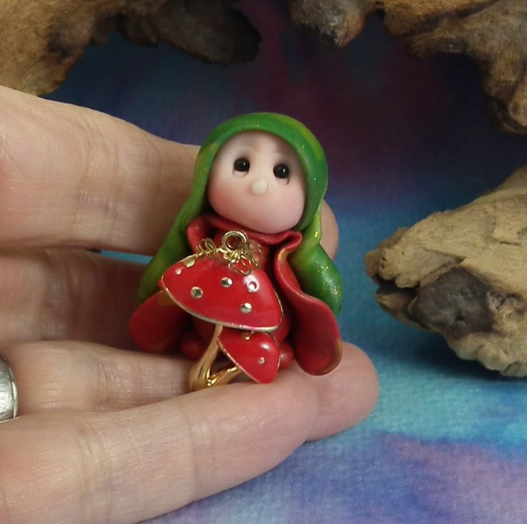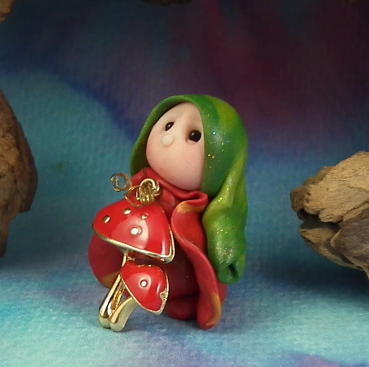 This is a 'one of a kind' creation having been entirely handmade without the use of moulds here at my studio on the Sussex Coast. Modelled with artist blend polymers, blushed before sealing with lacquer, Tippy has sparkling black onyx eyes and garden robes. Tippy the Garden Gnome is just one and a half inches tall.