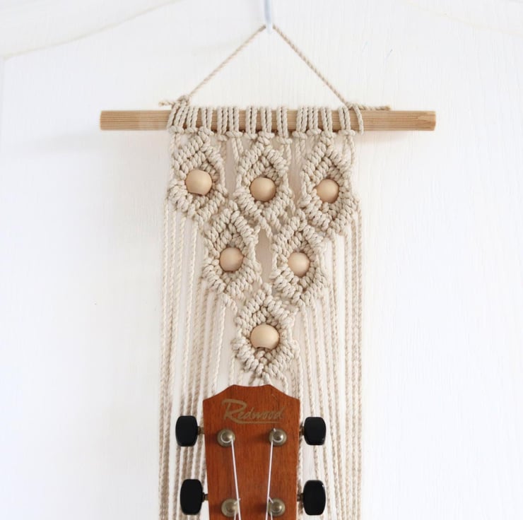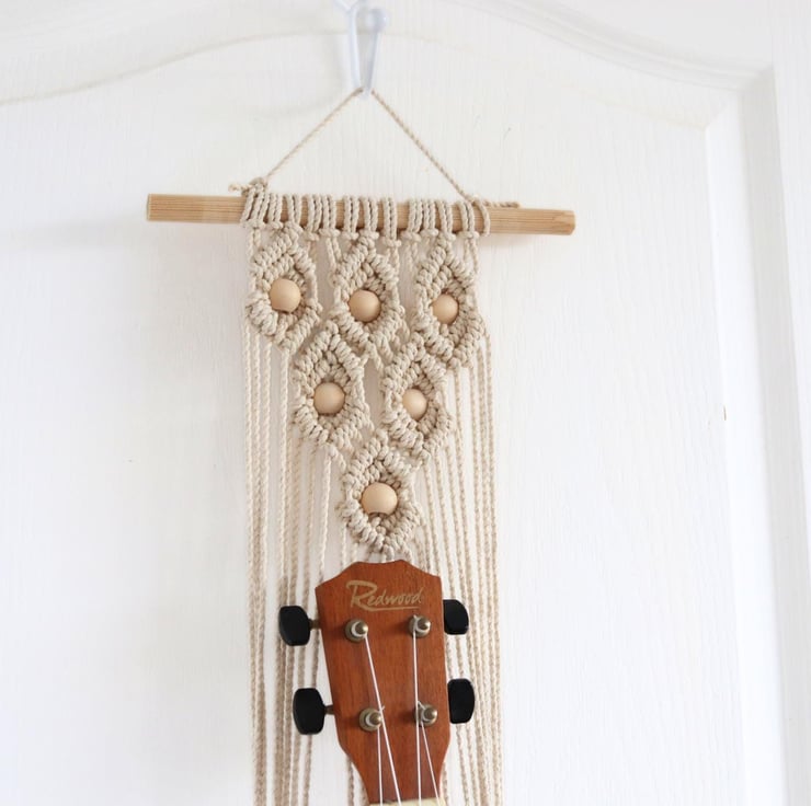 This is a handmade macrame ukulele mount which features gorgeous, intricate patterns in various colours. I also pack these in tissue, brilliant if needed for a gift, or even yourself.