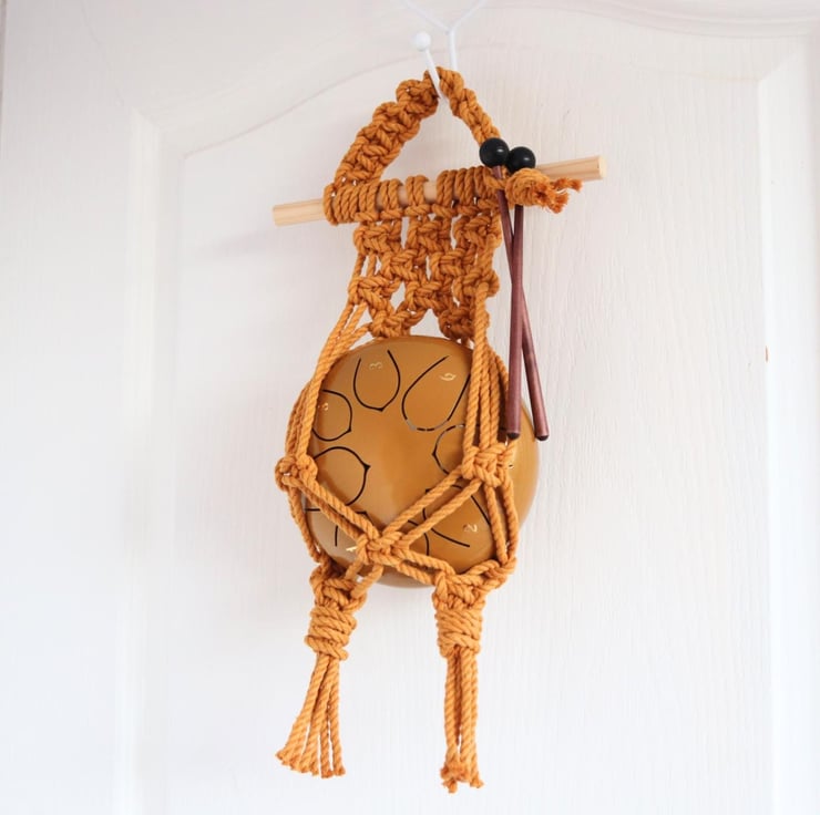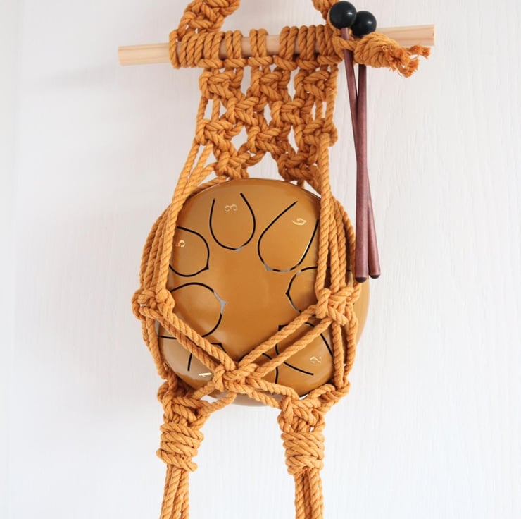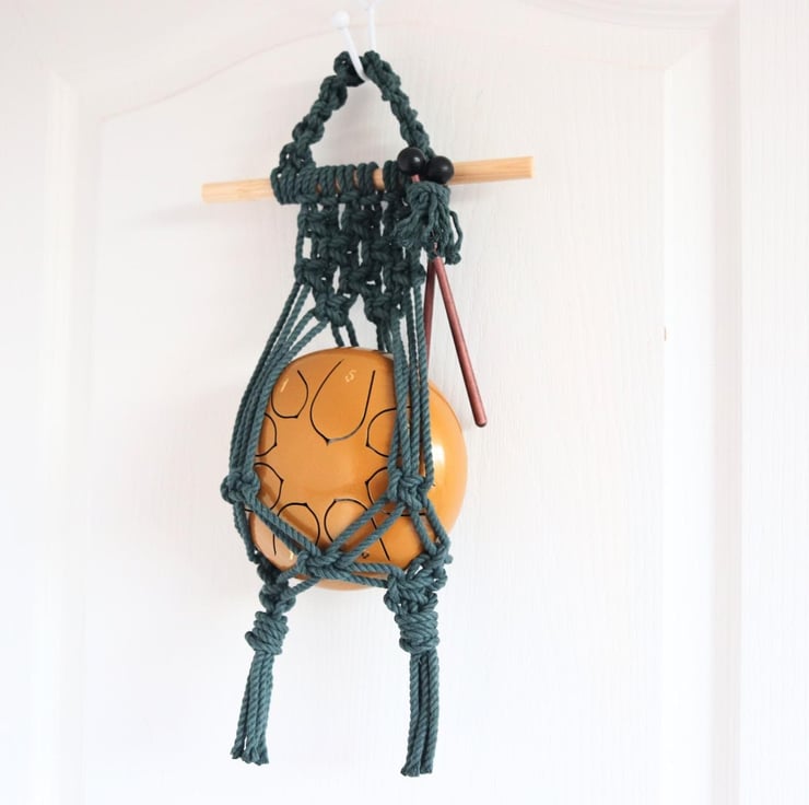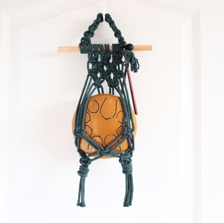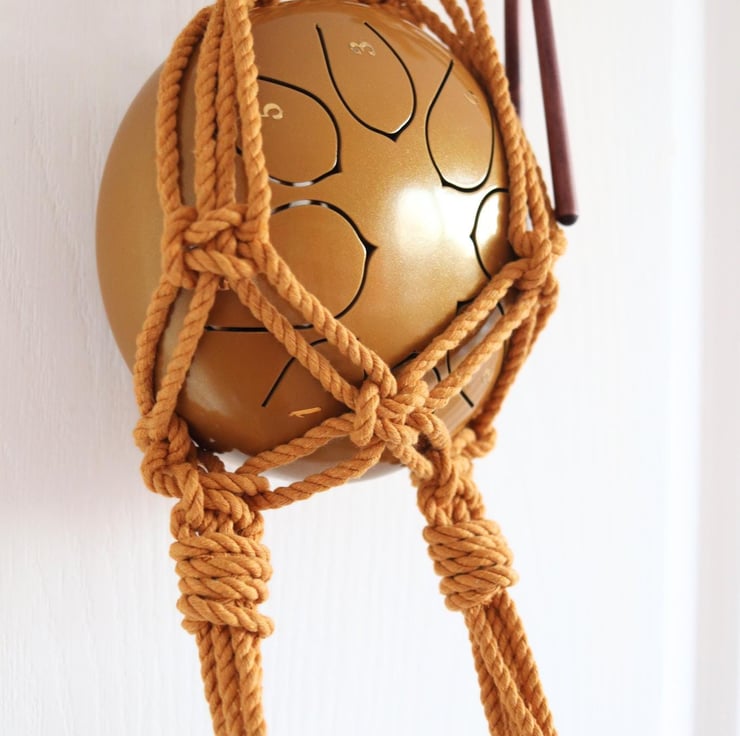 This design can also be customised for your own tongue drum. Please get in touch with me if you have a specific size drum. Each macrame instrument hanger is handmade at my home studio using my 5mm macrame high quality rope, you will also be given additional rope along the top so you can hang your hanger on your own wall hook.