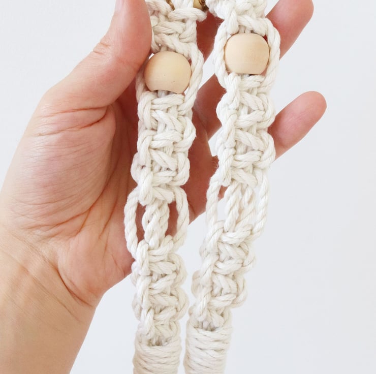 Macrame Ukulele and Guitar Wall Hanger Mount with strong bamboo hoop and wooden bead with recycled cotton rope - made by a professional musician - will be suitable ukulele's with tuning pegs on either side.
