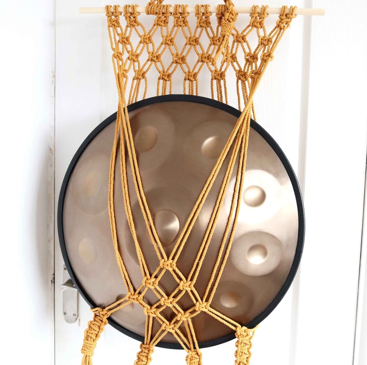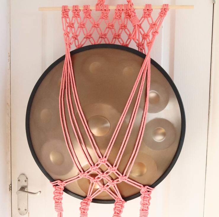 Each macrame instrument hanger is handmade at my home studio using my 4mm macrame high quality rope, you will also be given additional rope along the top so you can hang your hanger on your own wall hook.
