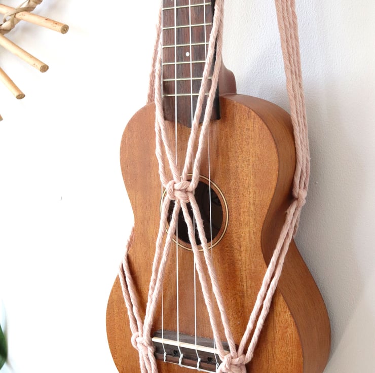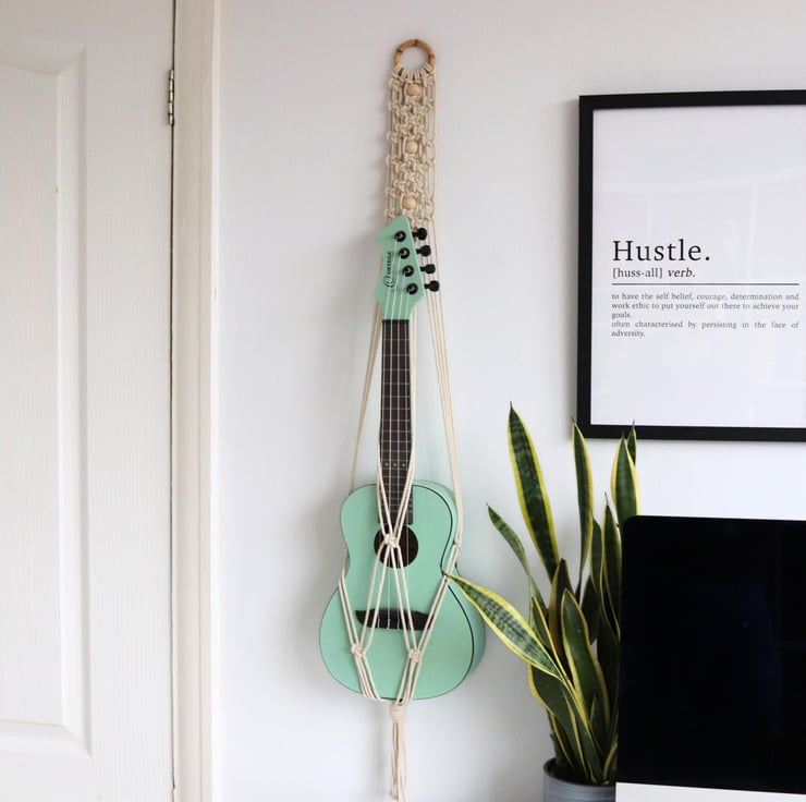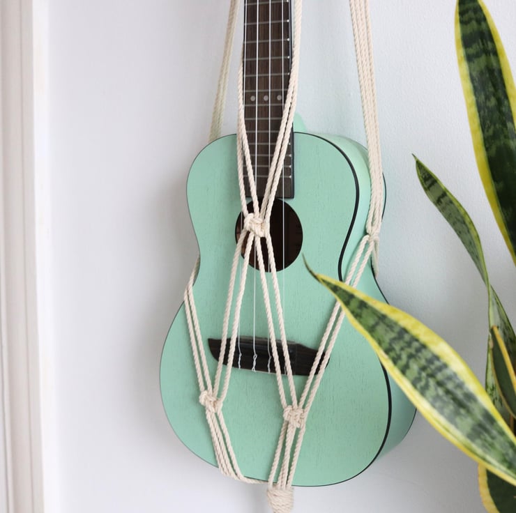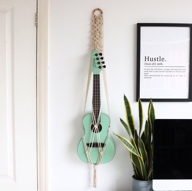 The hanger looks gorgeous hanging either on a wall, from the ceiling, or behind a door. Perfect for any ukulele enthusiast out there who wants to give their instrument a home!