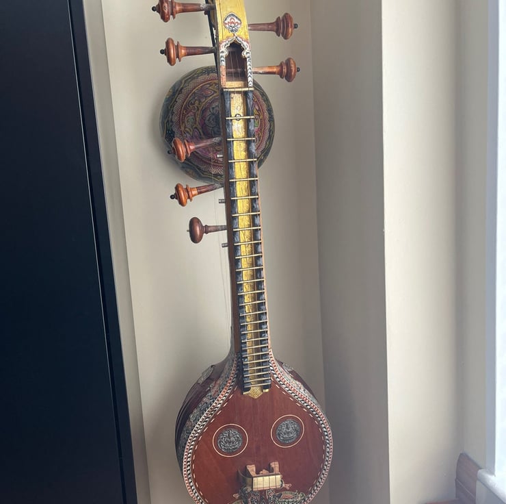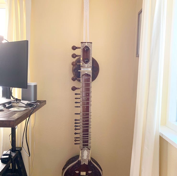 If you're looking for a unique way to hang your pride and joy, why not try a macrame sling? These hangers are strong and sturdy enough to hang you sitarveena from, they look stylish and are practical.