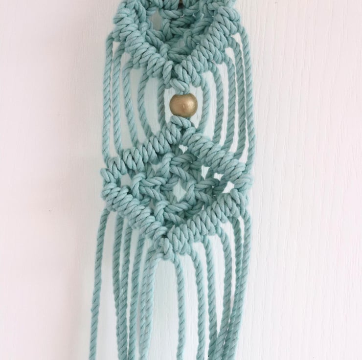 Macrame Sitar Veena and Sarode Wall Hanger Sling. Please note, the macrame hanger does not come with the black hook in the picture, you can purchase these from amazon or a DIY store. Please also note, that you need a tumba on the back of your sitar or veena.