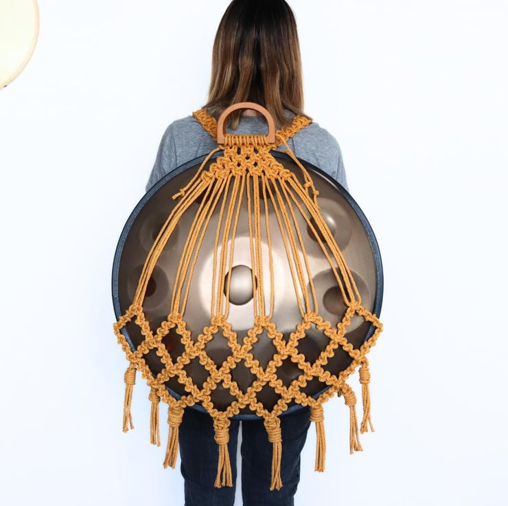 If you're looking for a unique handpan case for your pride and joy, my handmade macrame handpan backpacks are a stylish, boho and attractive way to store them whilst you carry them around festivals and gatherings. This case is designed in order to show off your handpan and amplify the beauty of your handpan.