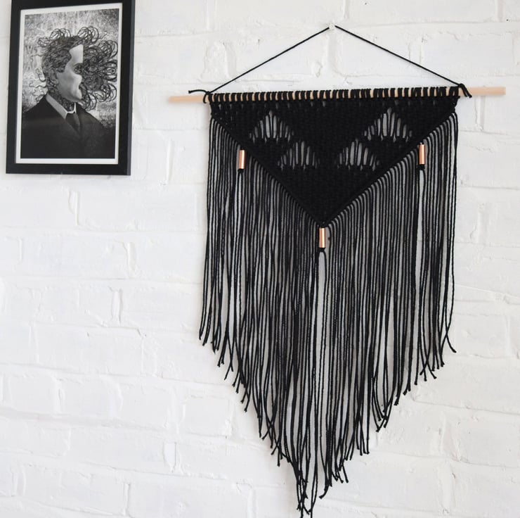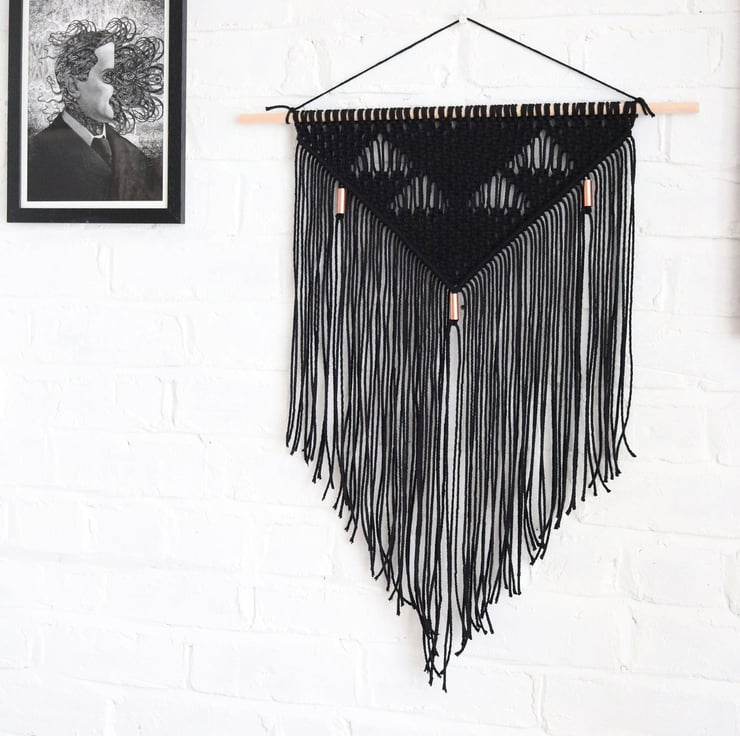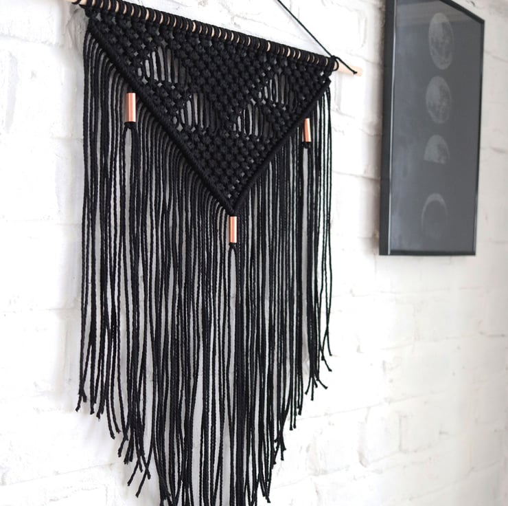 Macrame Black Wall Hanging with Copper Beads 'APHRODITE'