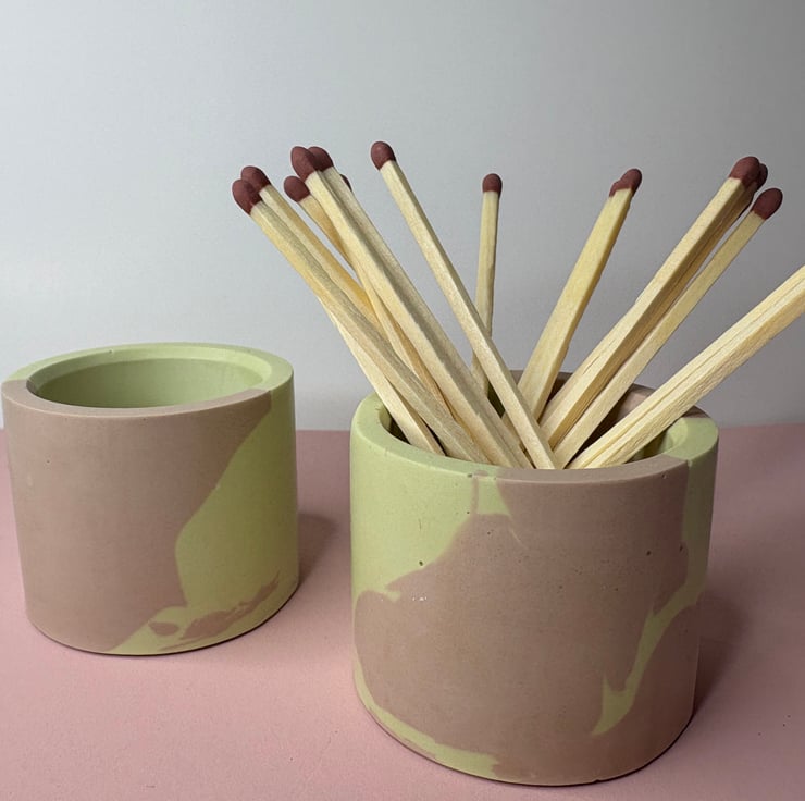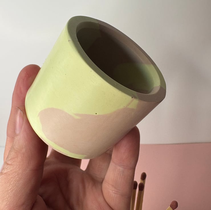 Made using eco friendly Jesmonite. The pots are hand poured and so some small bubbles are to be expected this is a natural occurrence and so not a flaw in the item.