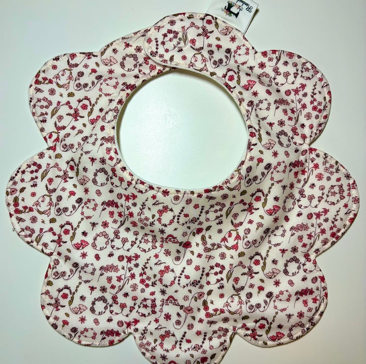 It is made from three layers of fabric, the beautiful cotton lawn, a cotton jersey backing and a middle layer of absorbent bamboo towelling. Top stitching around the edge adds a neat finish.