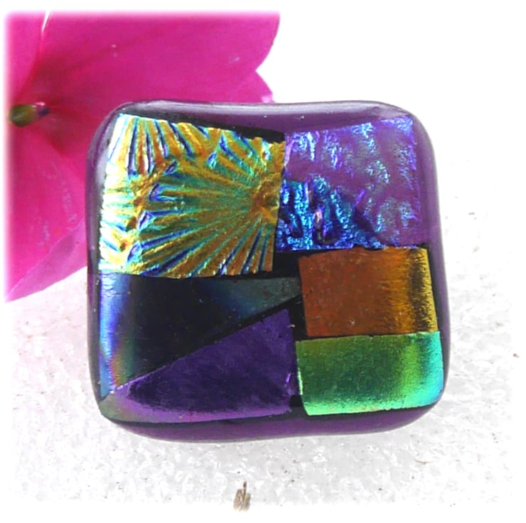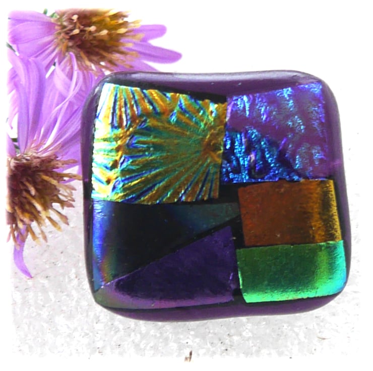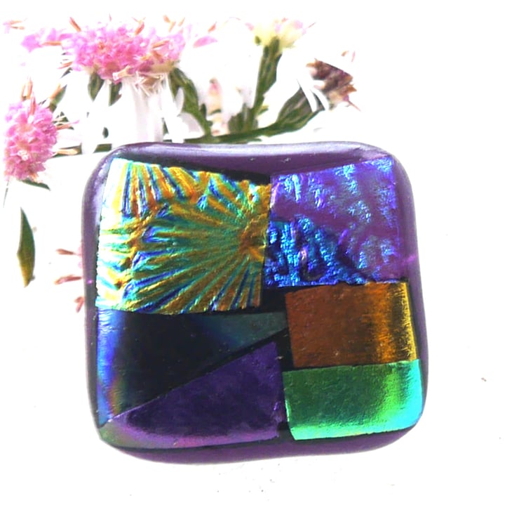 The dichroic glass cabochon for this brooch was handmade, by me, with love.